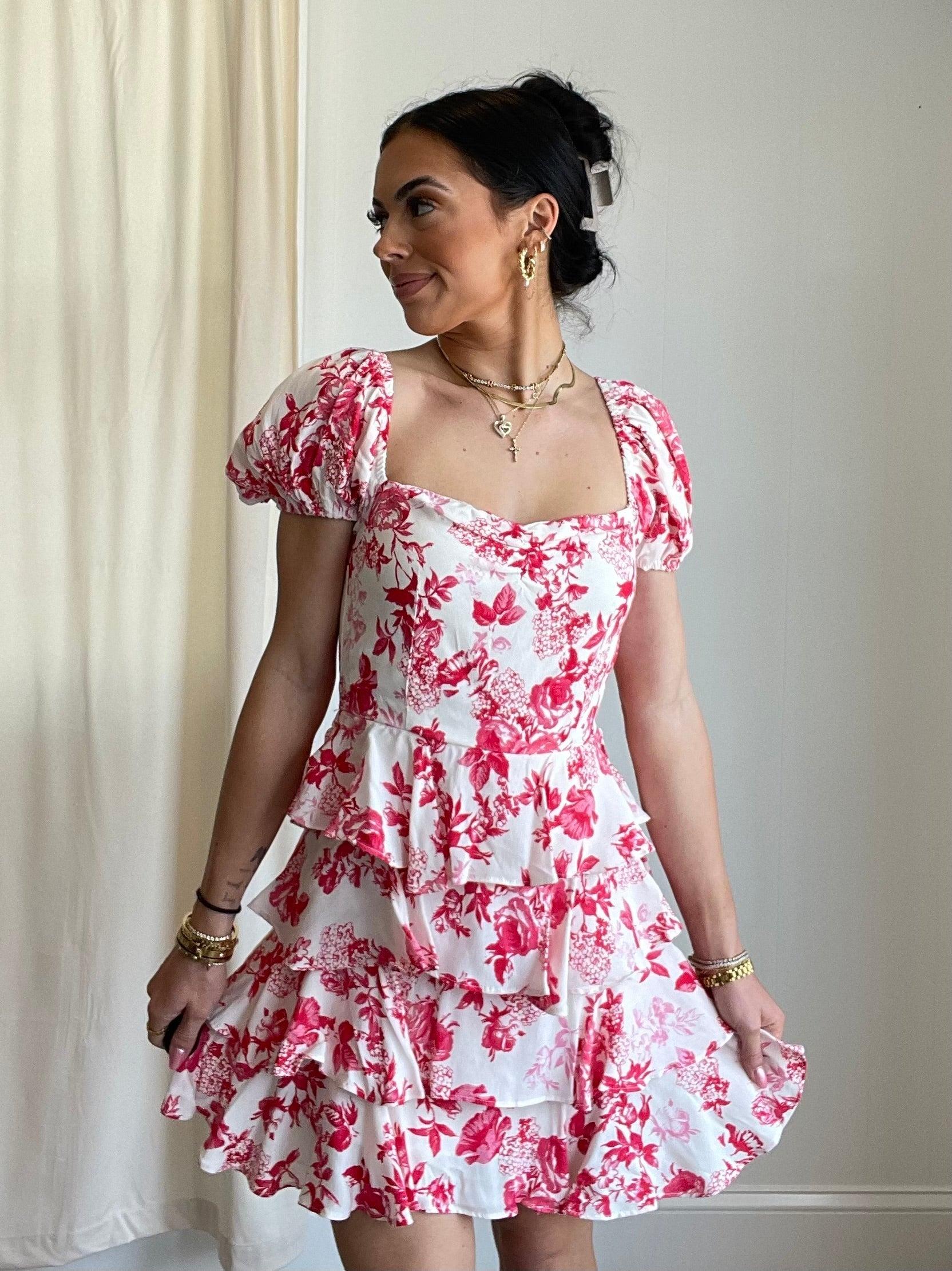 Introducing the Atara Dress - with a playful tiered layer design and short sleeves, it's the perfect pick for a fun, flirty look!