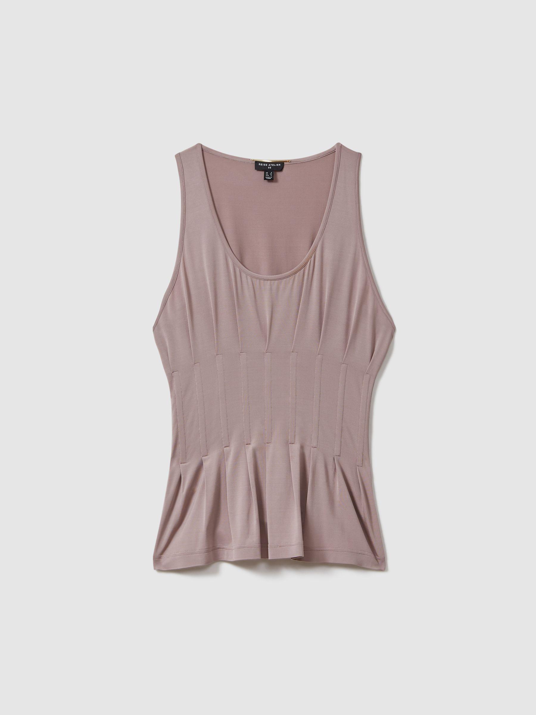 More than a conventional vest, the Fernanda scoop neck has a silky viscose blend with premium stretch and an irresistible lustre. Corsetry boning features to the waist and it fastens at the reverse, cinching its relaxed silhouette. Viscose blend Scoop neckline Corsetry boning to waist Hook and eye fastening to reverse Reiss Atelier is an effortlessly chic collection of timeless wardrobe staples and occasion pieces that can be worn - and loved - for many years. The model is wearing a size 8 Measurements of model: Height 5 10" / 177.8cm.