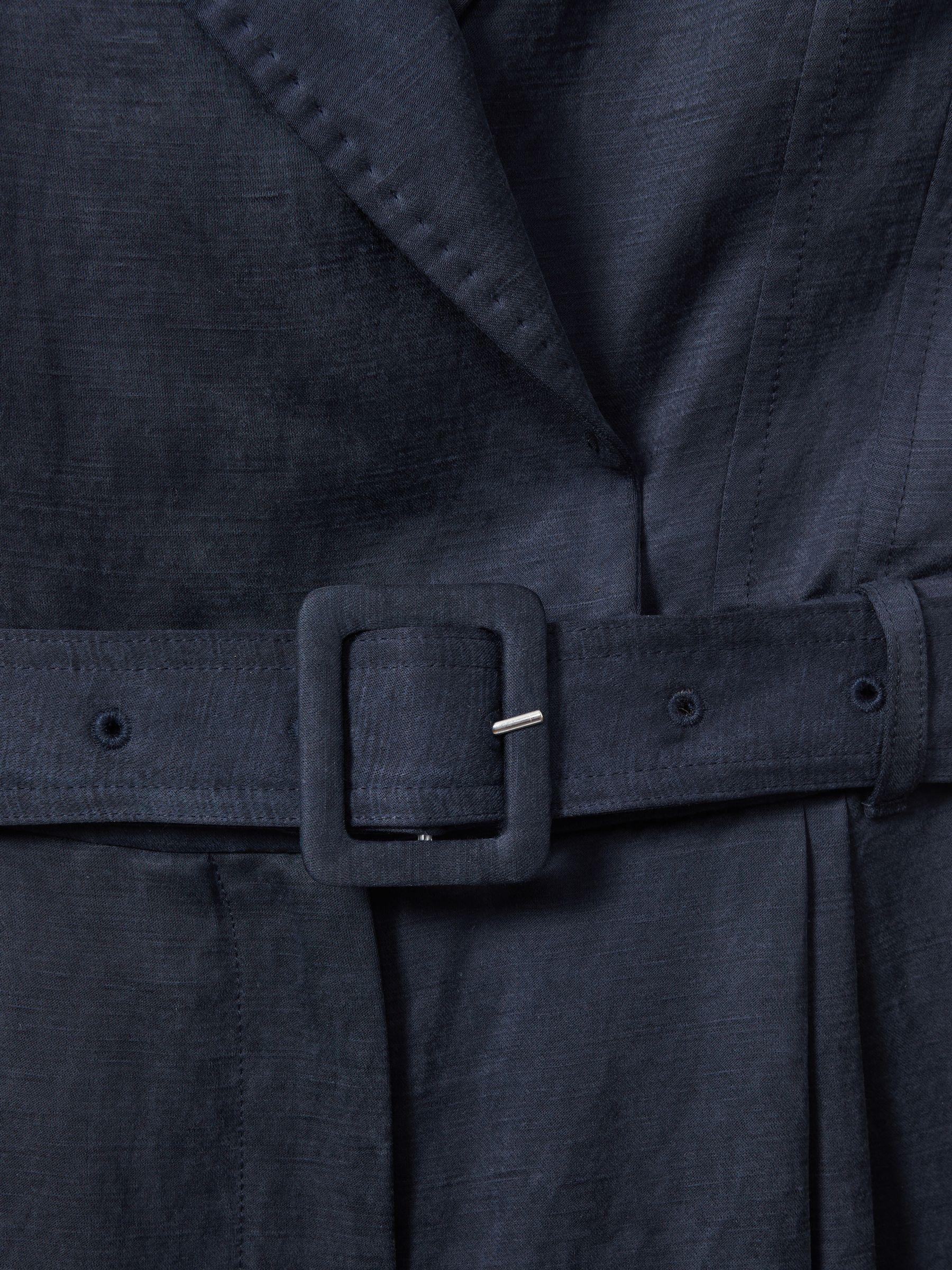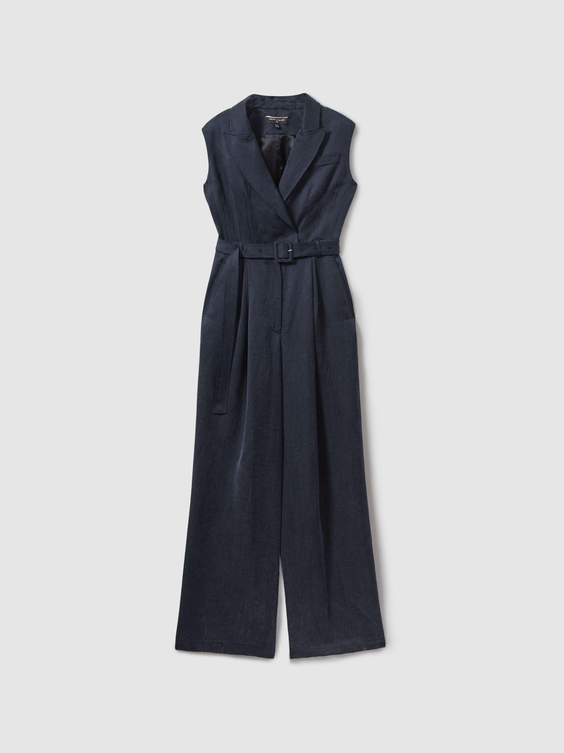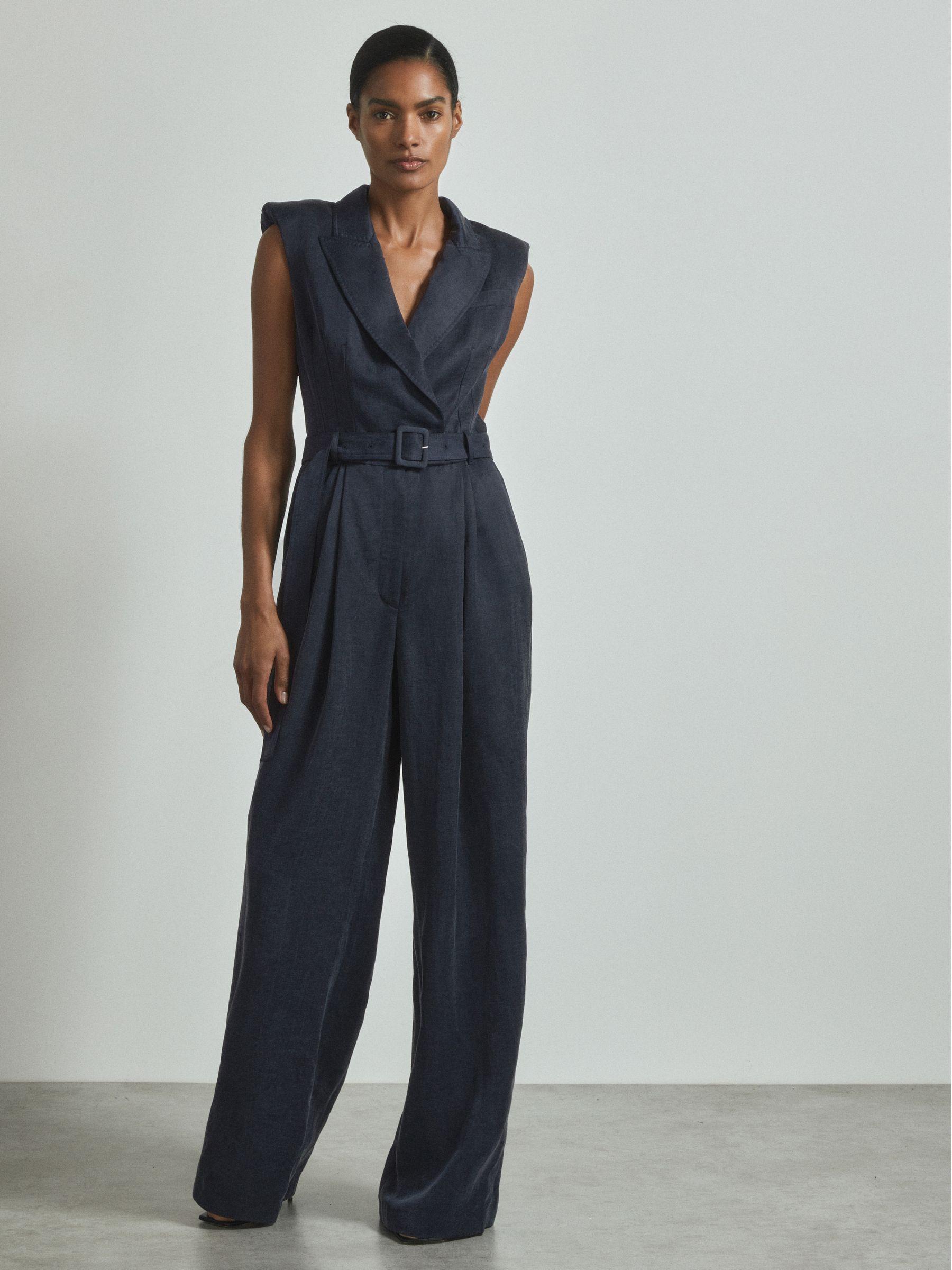 Made from a lyocell-linen blend, the Anabella jumpsuit has a silky cupro finish and a premium drape against the skin. Its double-breasted front, corset-style stitching, and soft padded shoulders set a confident mood, and it’s cinched with a self-fabric belt. Italian lyocell-linen cupro fabrication Double-breasted front Padded shoulders Corset-style stitching Self-fabric belt Side pockets Front pleats Wide leg Reiss Atelier is an effortlessly chic collection of timeless wardrobe staples and occasion pieces that can be worn - and loved - for many years.