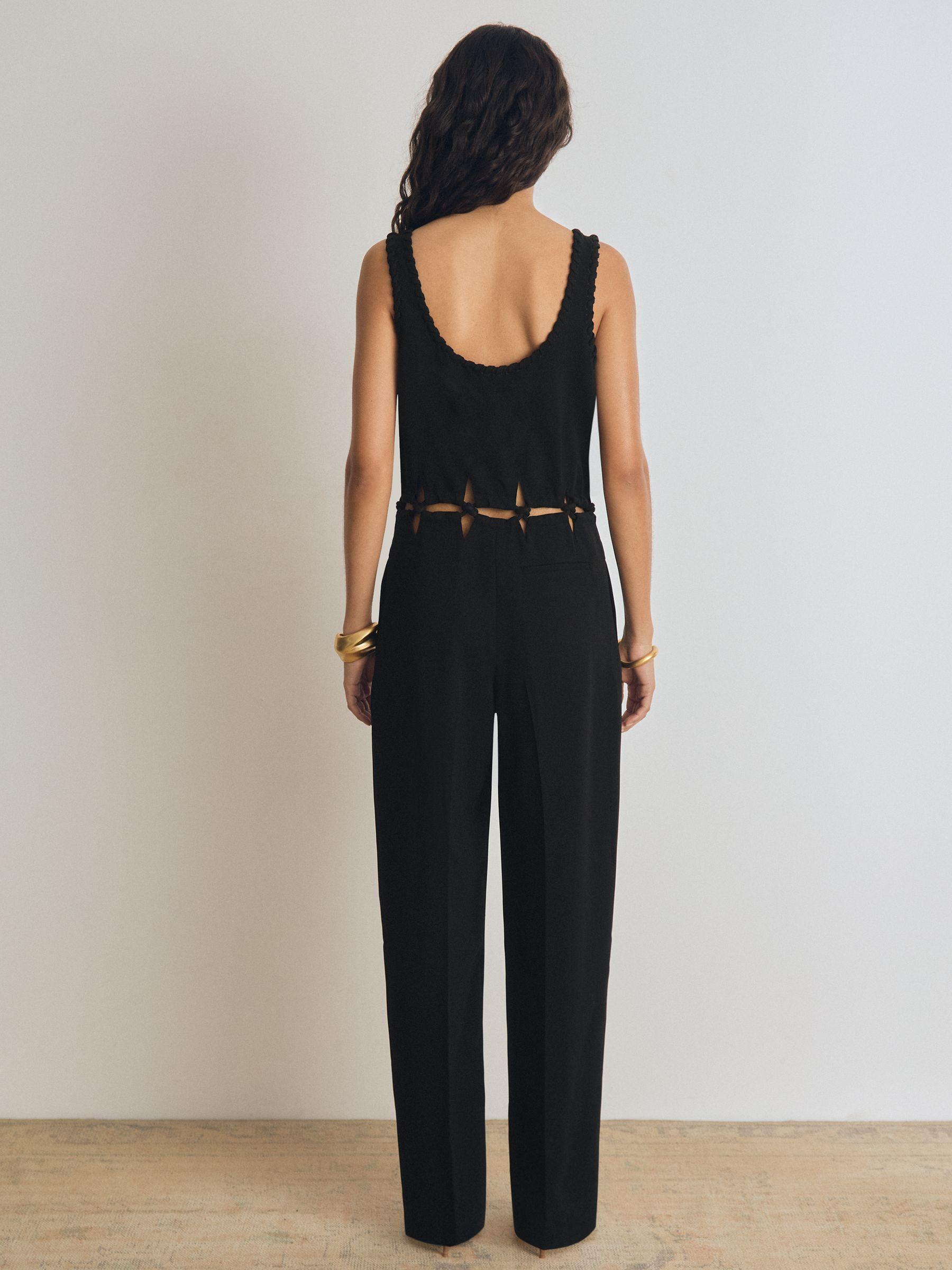 A cut-out waistline interwoven with knotted rope cord lends an elevated, modern twist to the Miniva jumpsuit. Tonal whipstitching along the neckline, armholes, and back elevates it's artisanal appeal, while the tailored straight leg completes the refined silhouette. Cut-out waist with rope cord. Whipstitched edge. Scoop neckline. Side slip pockets. Tailored straight leg. Concealed front buttons and zip. Reiss Atelier is an effortlessly chic collection of timeless wardrobe staples and occasion pieces that can be worn - and loved - for many years.