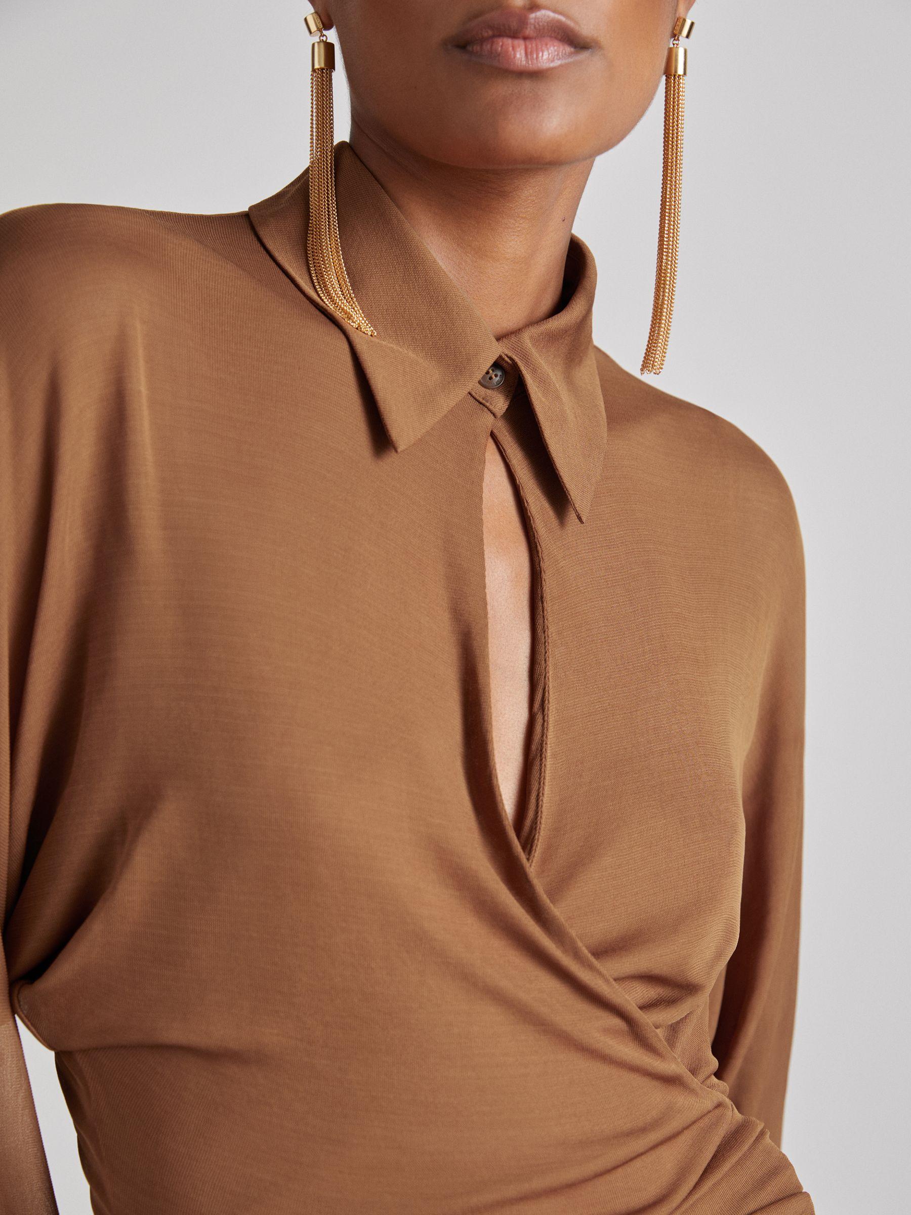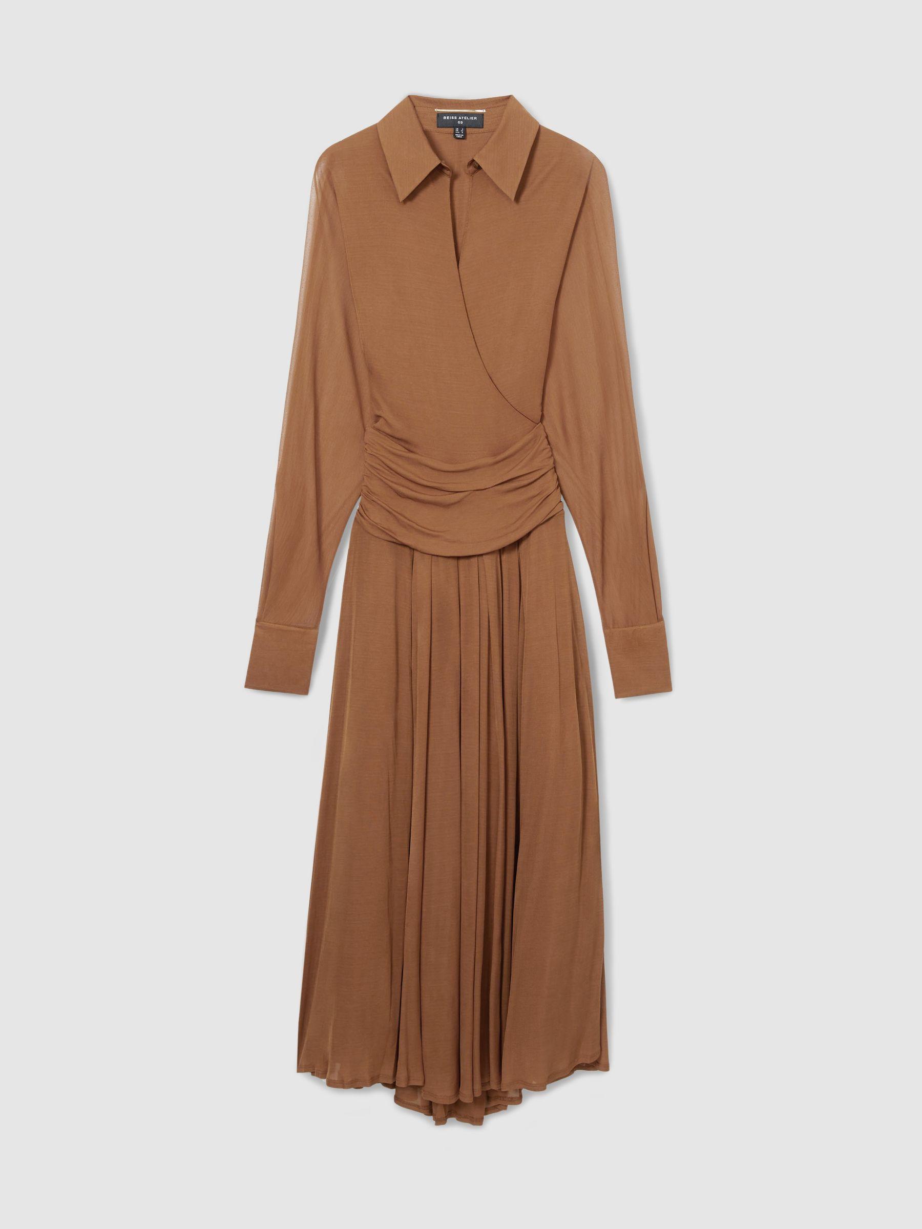 The bodice of the Saffron dress is cut with a sweeping curve that creates an elegant keyhole beneath the point collar. Rendered in georgette with 1950s-inspired grown-on sleeves, it’s accented with ruches and pleats at the waist before falling into flared maxi hem. Lightweight georgette. Point collar. Keyhole bodice. Grown-on sleeves. Gathered waist with pleats. Flared maxi hem. Satin skirt lining. Front button. Reiss Atelier is an effortlessly chic collection of timeless wardrobe staples and occasion pieces that can be worn and loved for many years. The model is wearing a size 8. Measurements of model: Height 5 10" / 177.8cm.