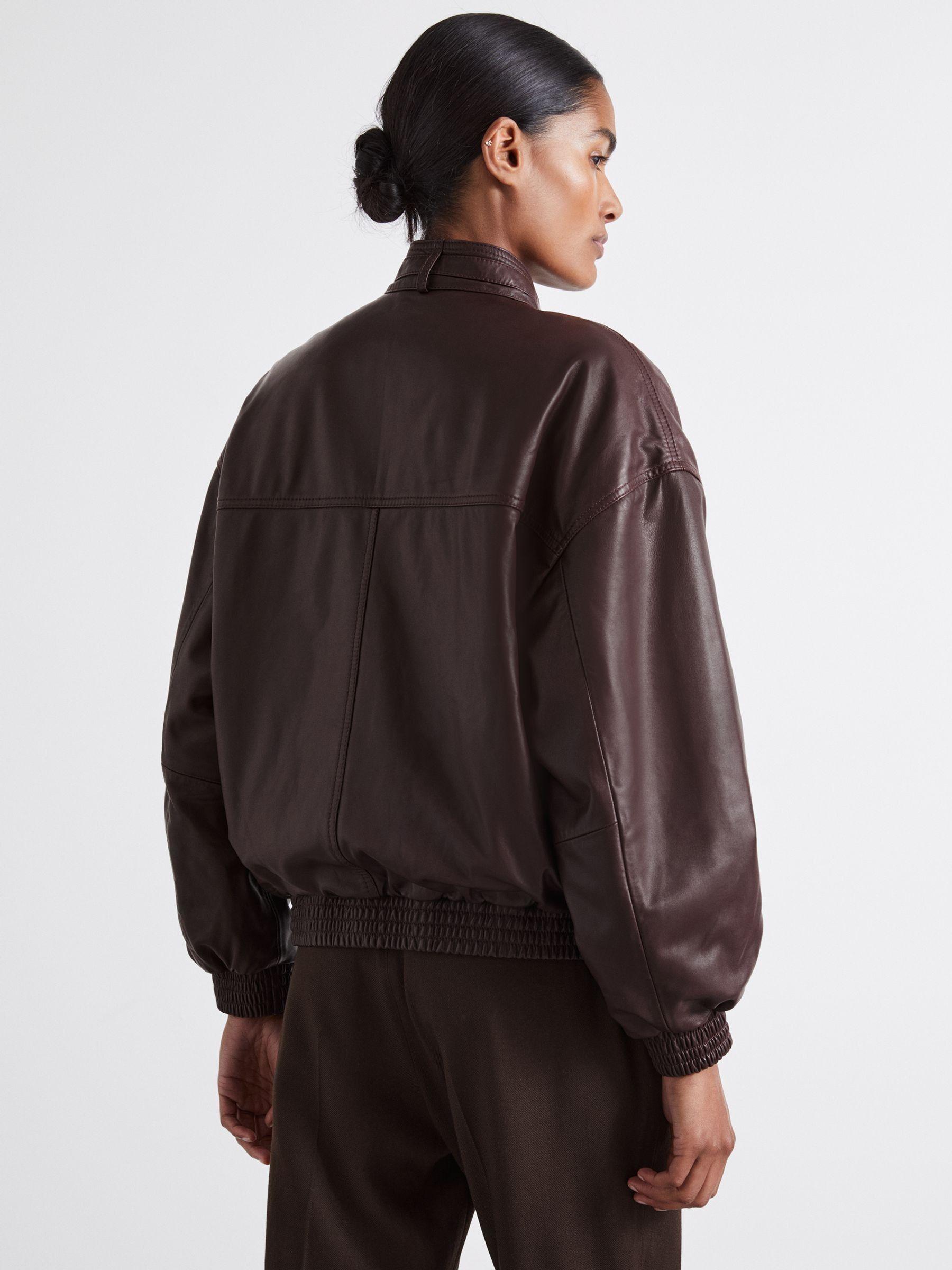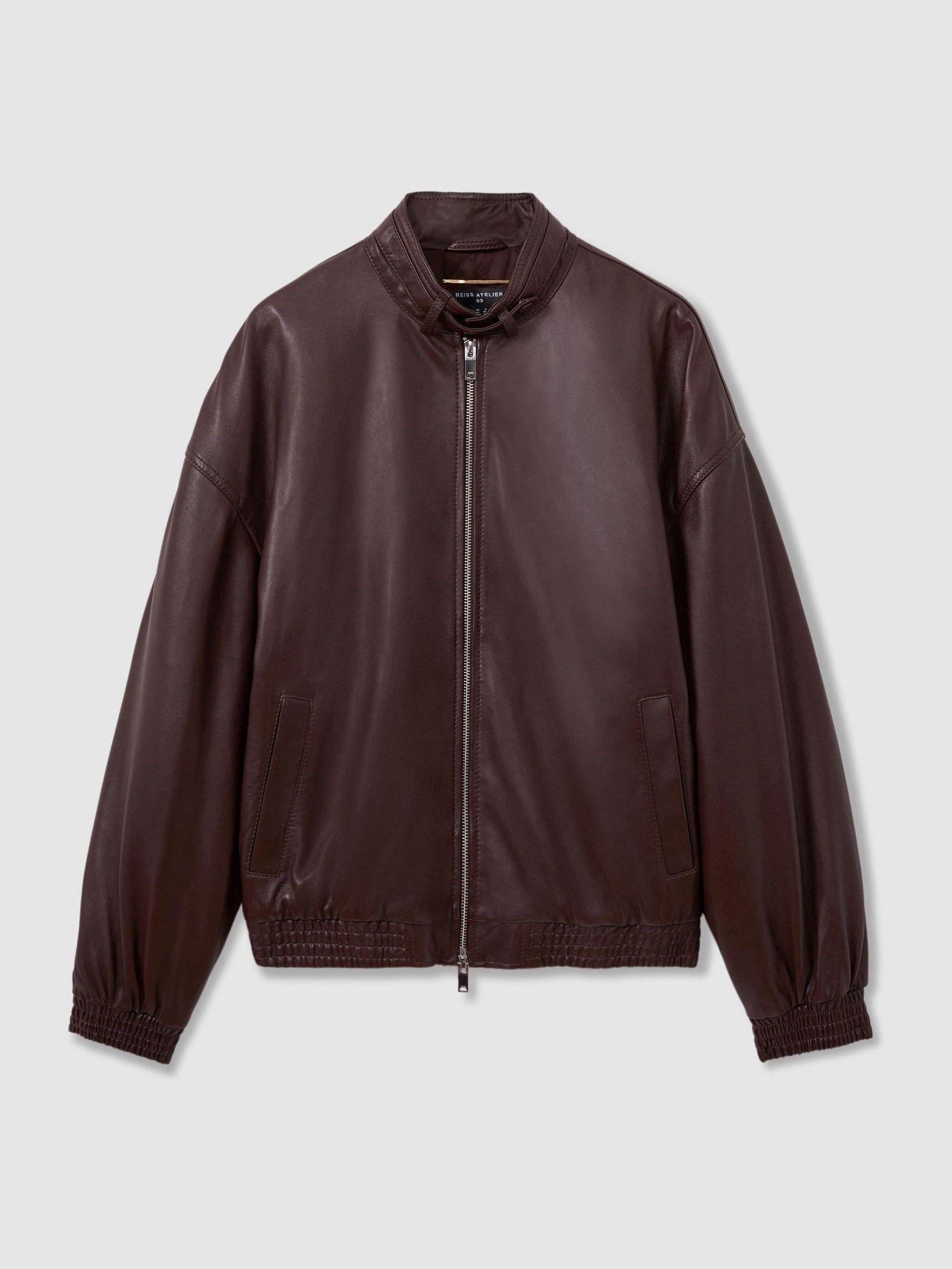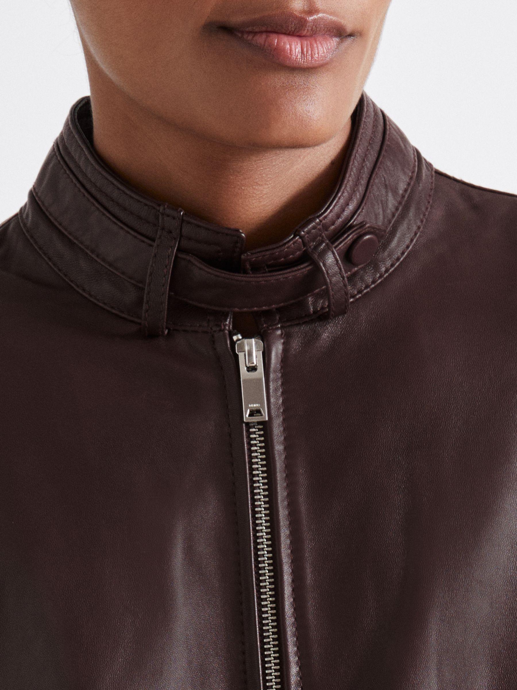 Atelier Leather Latched-Collar Bomber Jacket in Berry