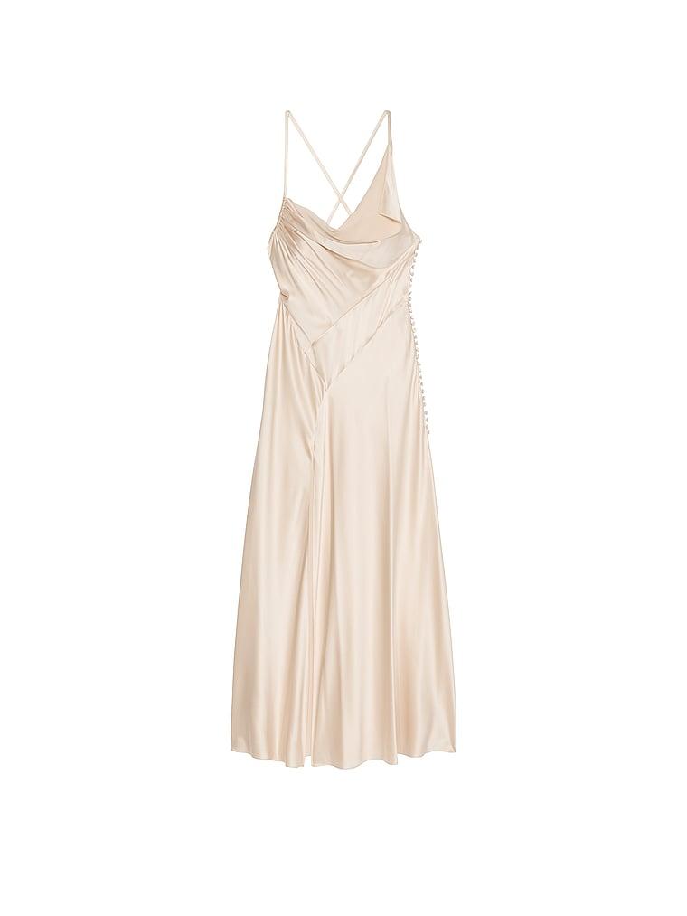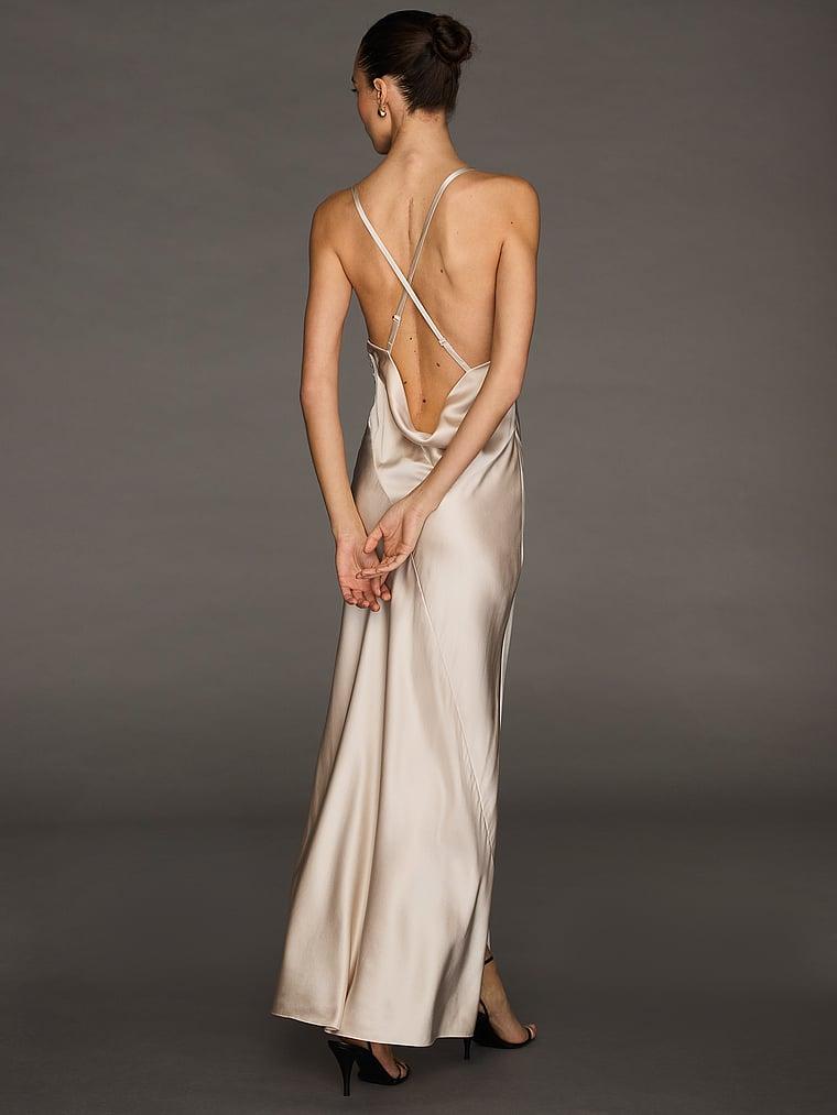 Modern romance meets exquisite draping in this flawless piece worthy of the runway or a a very special occasion. An asymmetric neckline draws the eye down to a high slit on one side. Its open, draped back makes for an unforgettable exit.Atelier Victoria's Secret X Altuzarra: Limited-edition ready-to-wear created exclusively for VS by Joseph Altuzarra, our premier designer-in-residence. Cowl neck gowl Bias-cut satin Ruched detailing at sides Covered buttons High leg slit Open back Adjustable criss-cross straps Imported