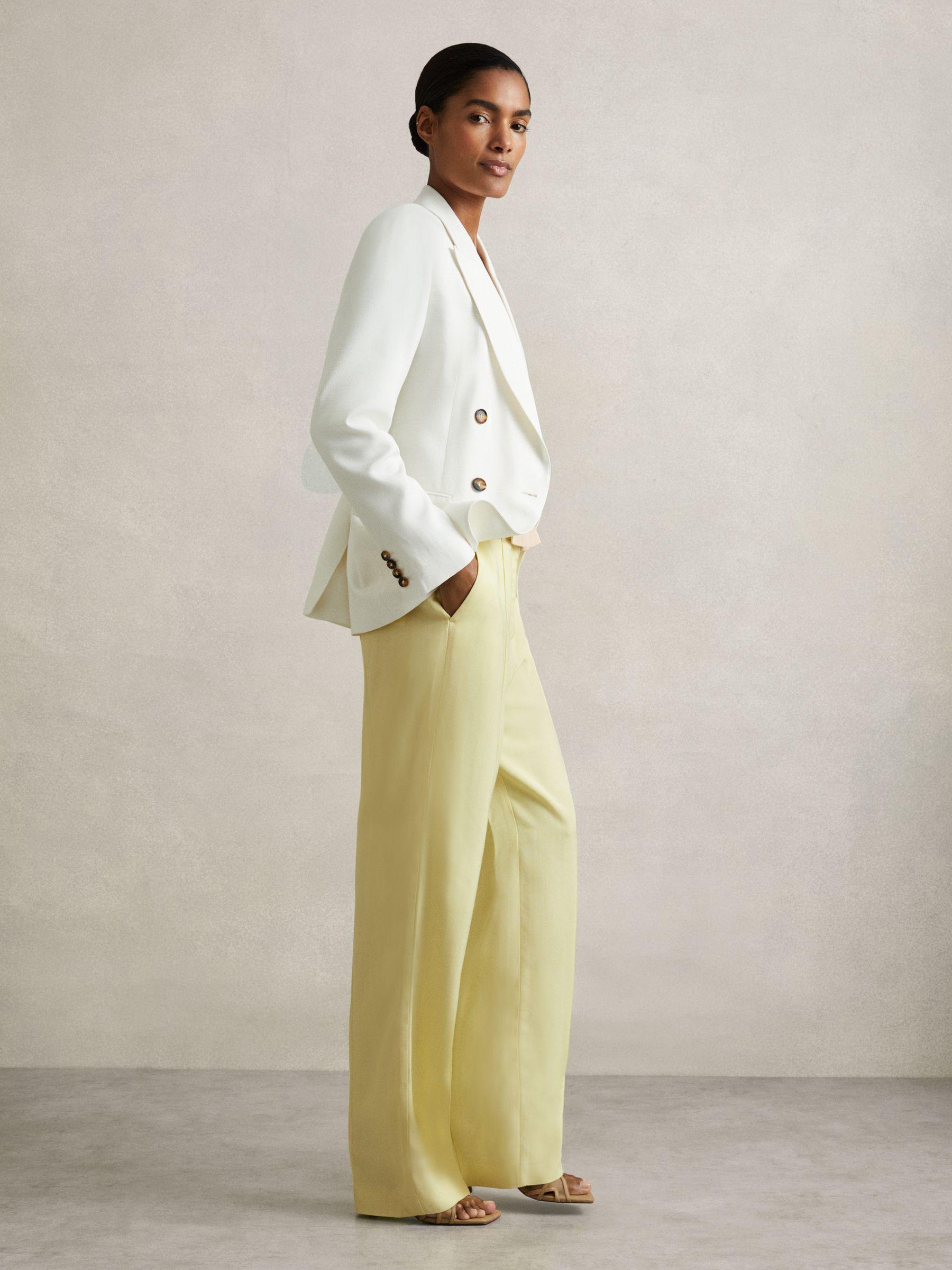 Add a pop of colour to classic tailoring with the Alecia trousers, crafted in vibrant lemon yellow from a midweight woven fabric. They’re cut to a fluid wide-leg silhouette and are elevated by refined front and back pintucks. Woven fabrication. Wide leg. Front and back pintucks. Angled side pockets. Button flap pockets to reverse. Double hook-and-bar with zip. Belt not included. Reiss Atelier is an effortlessly chic collection of timeless wardrobe staples and occasion pieces that can be worn - and loved - for many years.