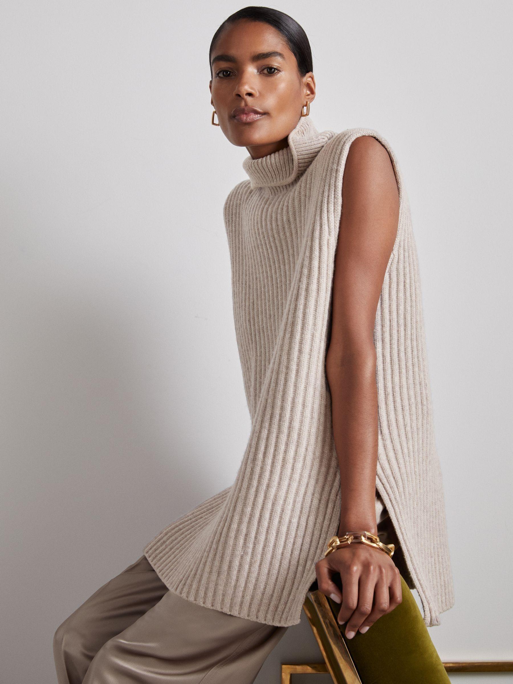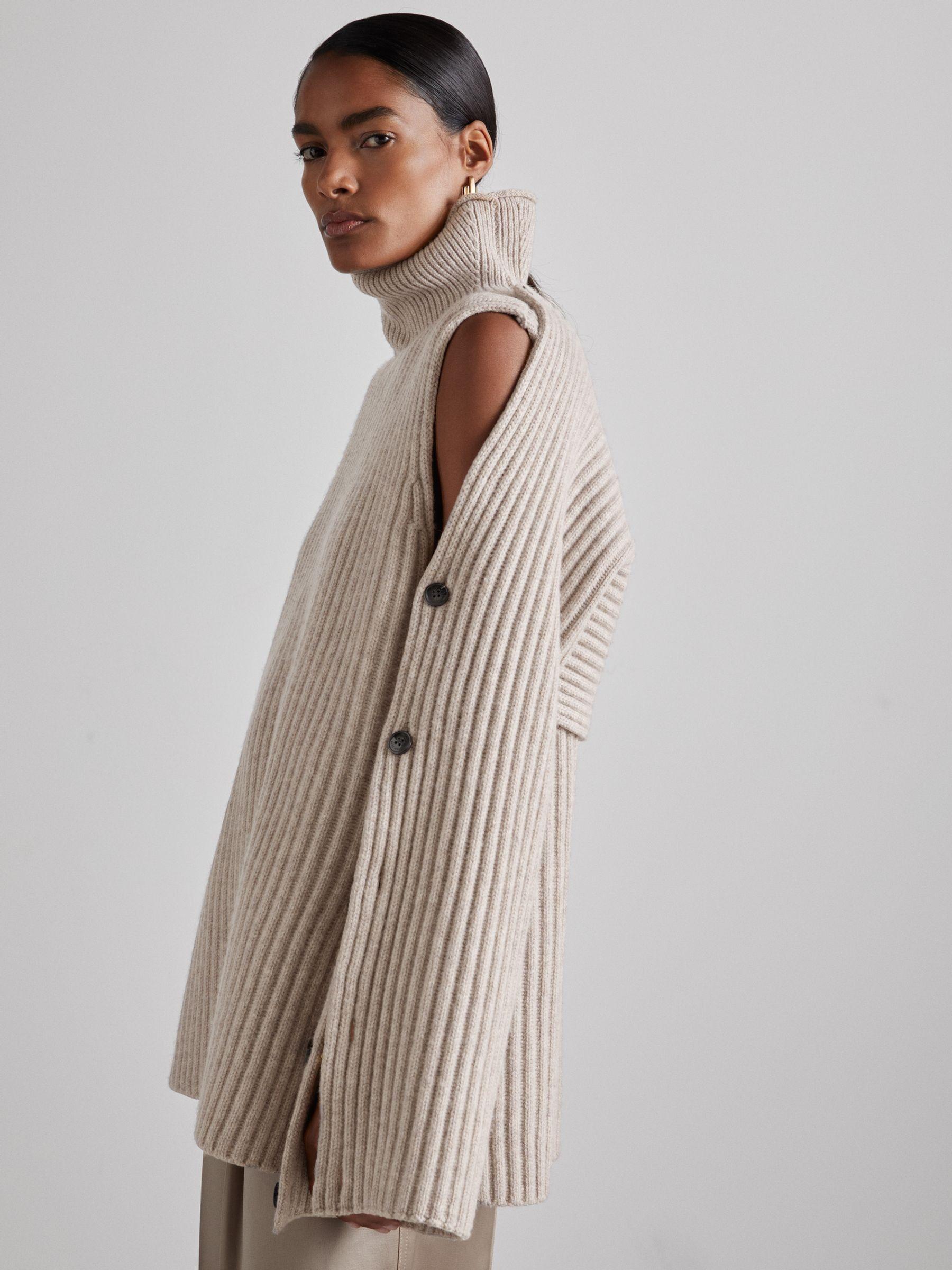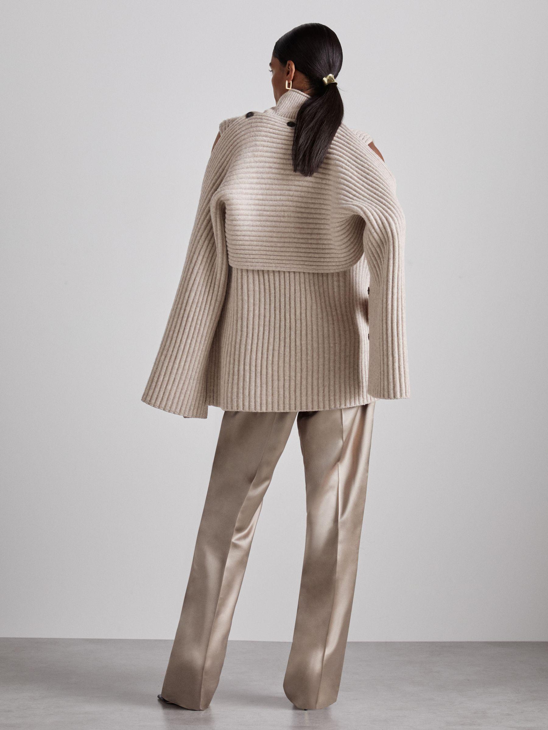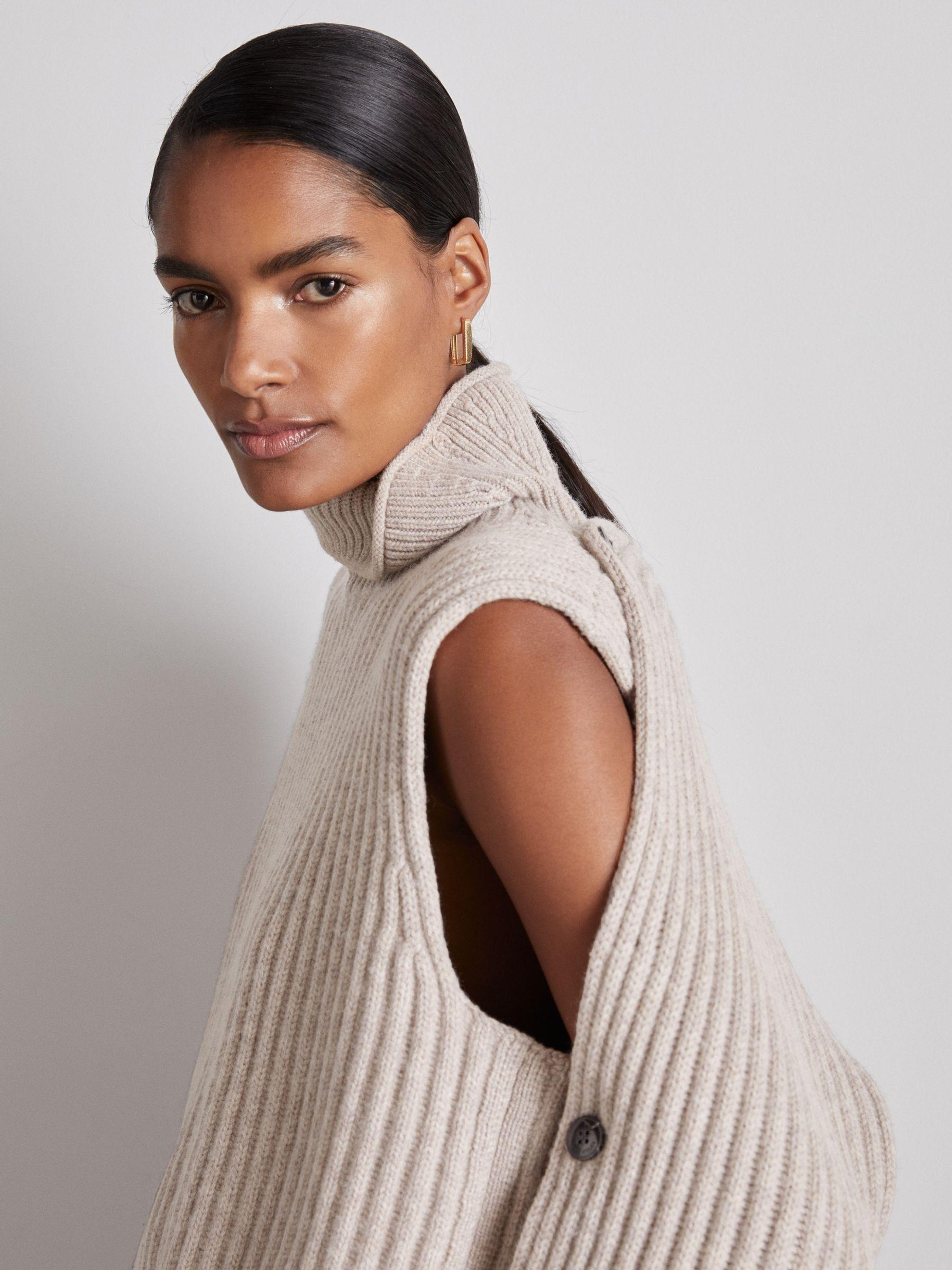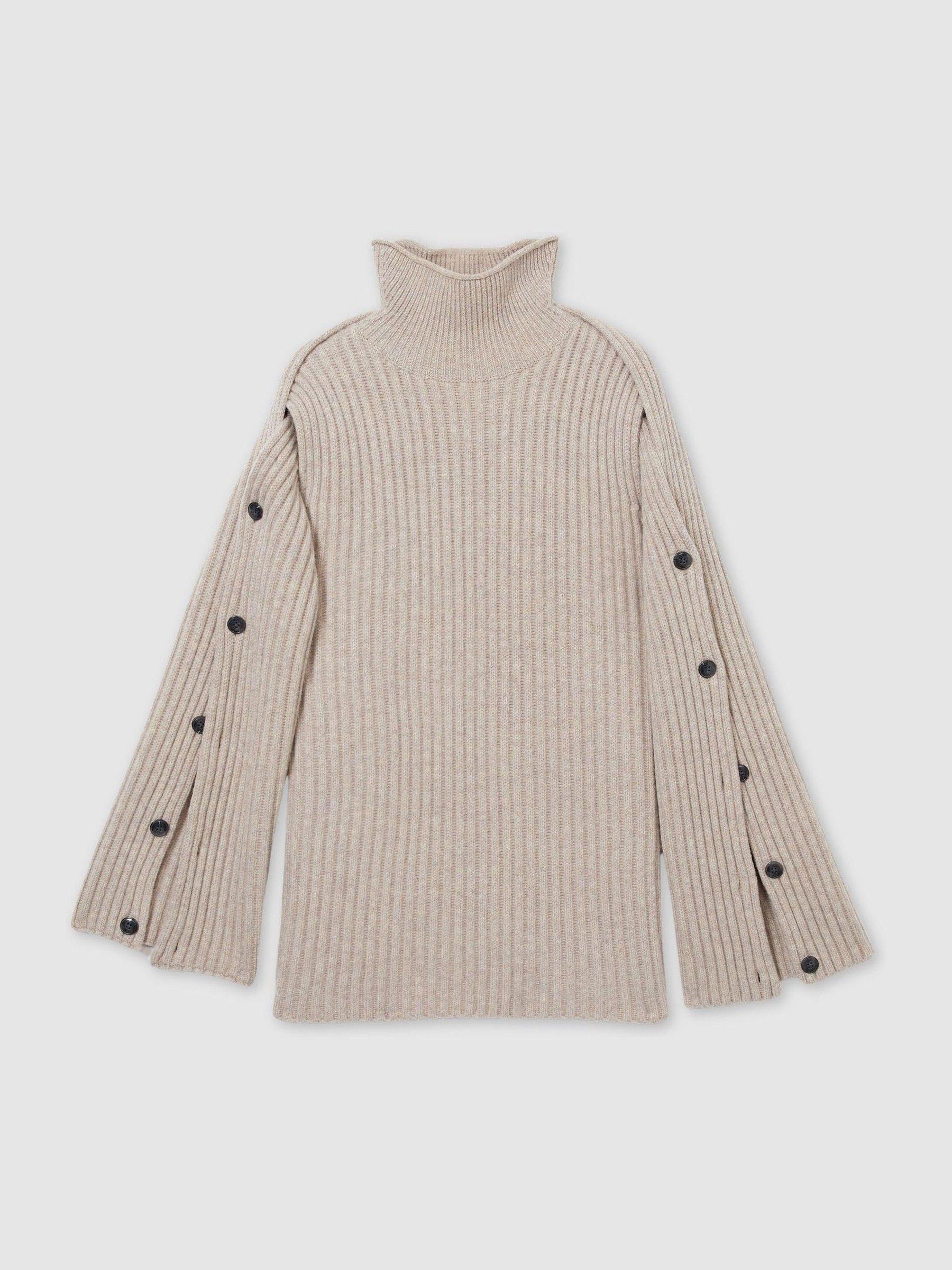 The Darcey Jumper consists of sleeves that are buttoned to a tunic — unfasten them to customise the piece. It’s rib knitted from stretch wool that’s blended with cashmere for supreme softness, then shaped with a funnel neckline. Wool-cashmere blend. Funnel neck. Buttoned sleeves. Reiss Atelier is an effortlessly chic collection of timeless wardrobe staples and occasion pieces that can be worn - and loved - for many years. The model is wearing a size S. Measurements of model: Height 5 10" / 177.8cm. Measurements of model: Height 5'10" / 177.8cm. The model is wearing a size S.