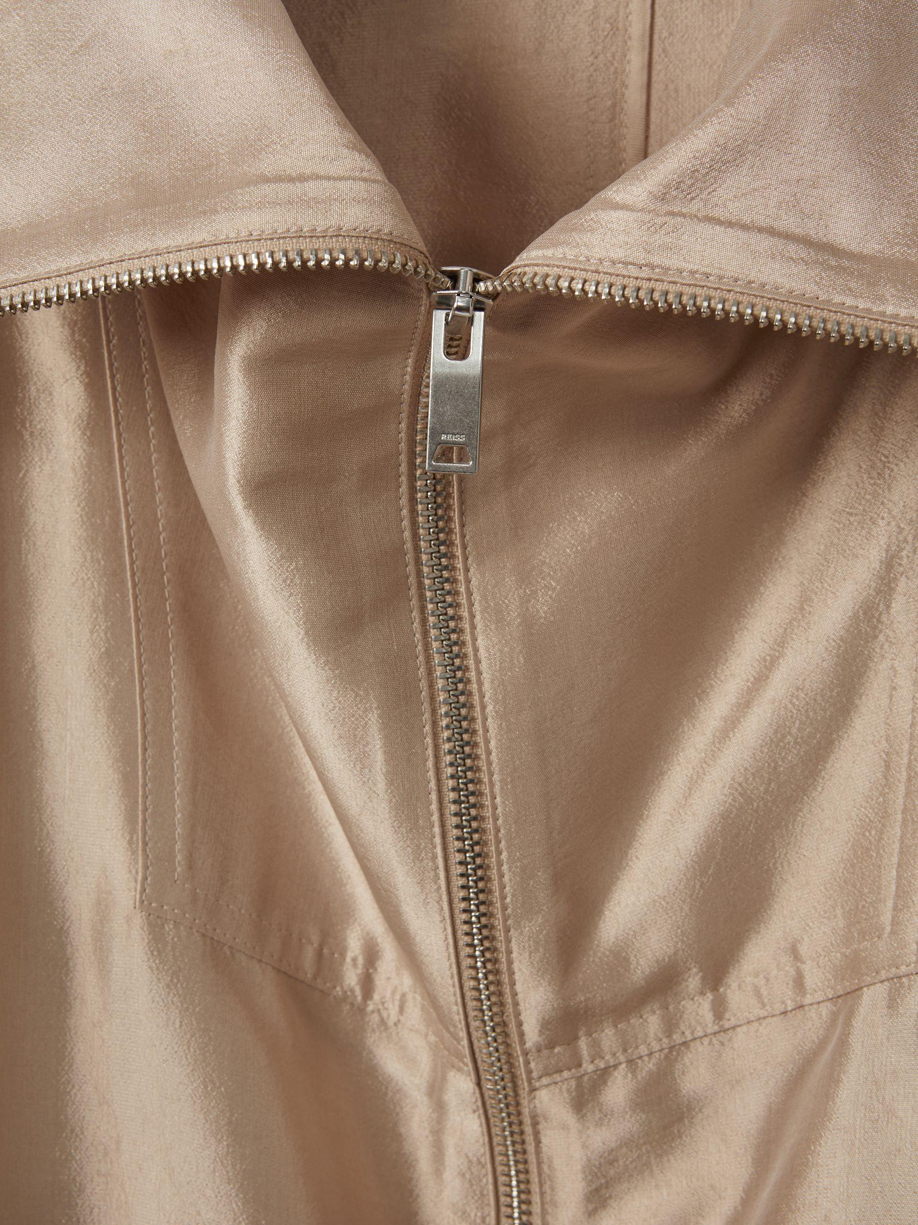 Enhanced with a touch of silk, this jacket is supremely fluid in fit with a unique, reflective sheen. It’s fitted with an exaggerated funnel neckline which can be zipped close, and a sporty elasticated hem. Made with silk. Zip-front closure. Funnel neckline. Side pockets. Press-stud cuffs. Elasticated hem. Reiss Atelier is an effortlessly chic collection of timeless wardrobe staples and occasion pieces that can be worn - and loved - for many years.