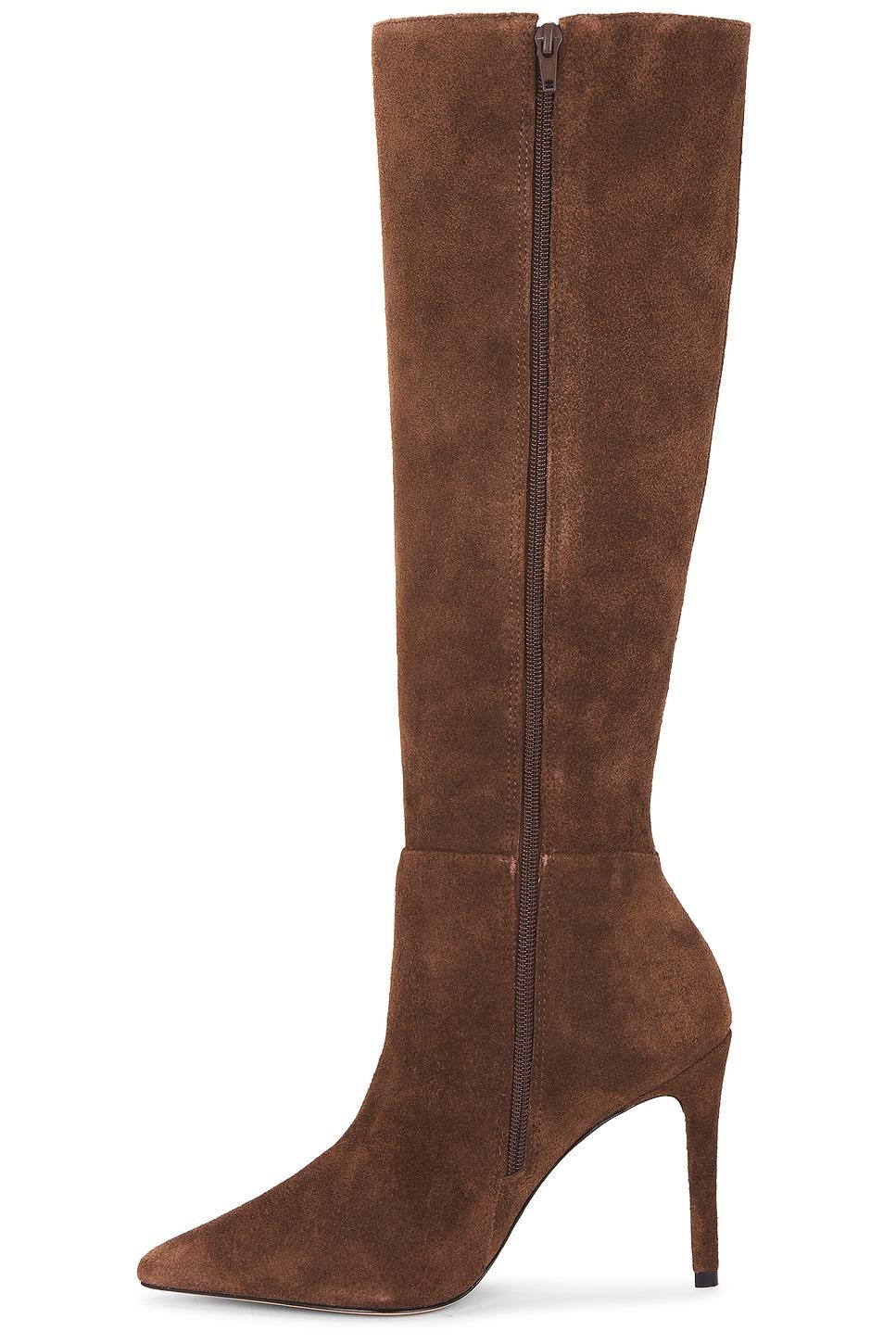 Suede upper with manmade sole. Made in Brazil. Inner side zip closure. Cushioned faux leather footbed and lining. Pointed toe. Stiletto heel. Approx 100mm/ 4 inch heelApprox 381mm/ 15 inch shaftOpening measures approx 20.42" in circumference. Revolve Style No. RAYE-WZ2963. Manufacturer Style No. RYSH10108 H25.