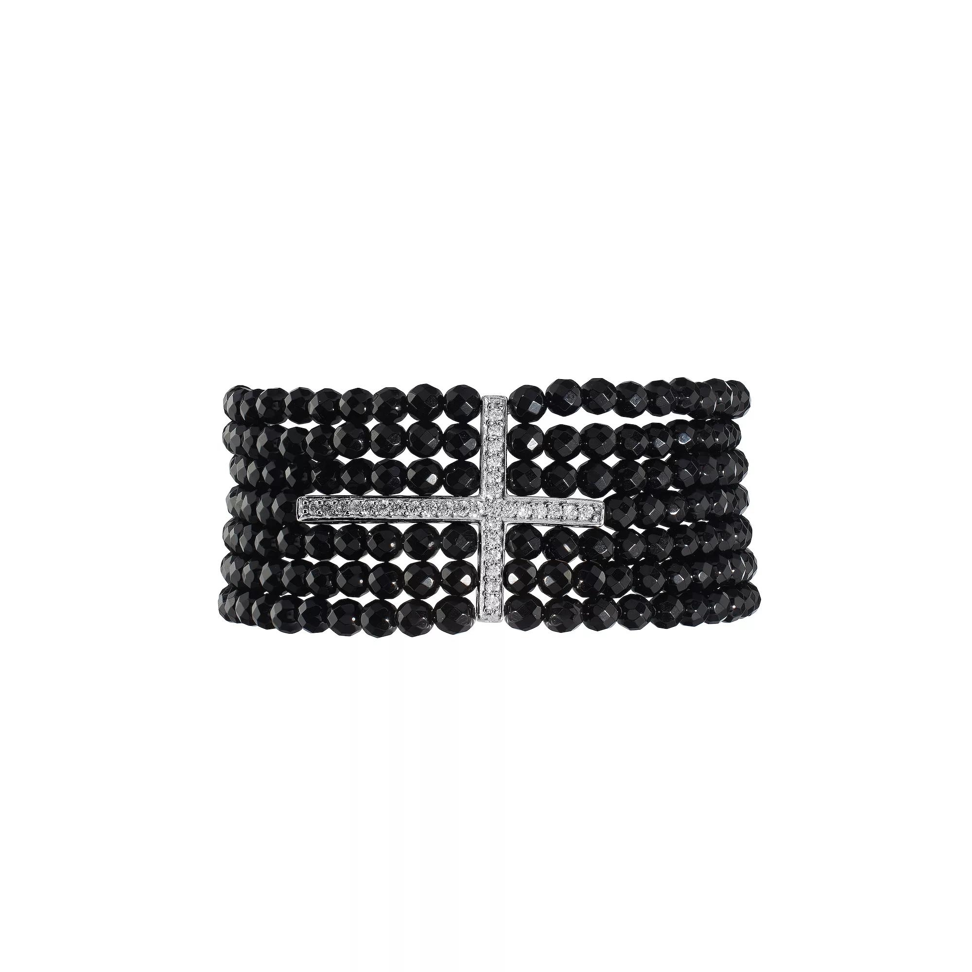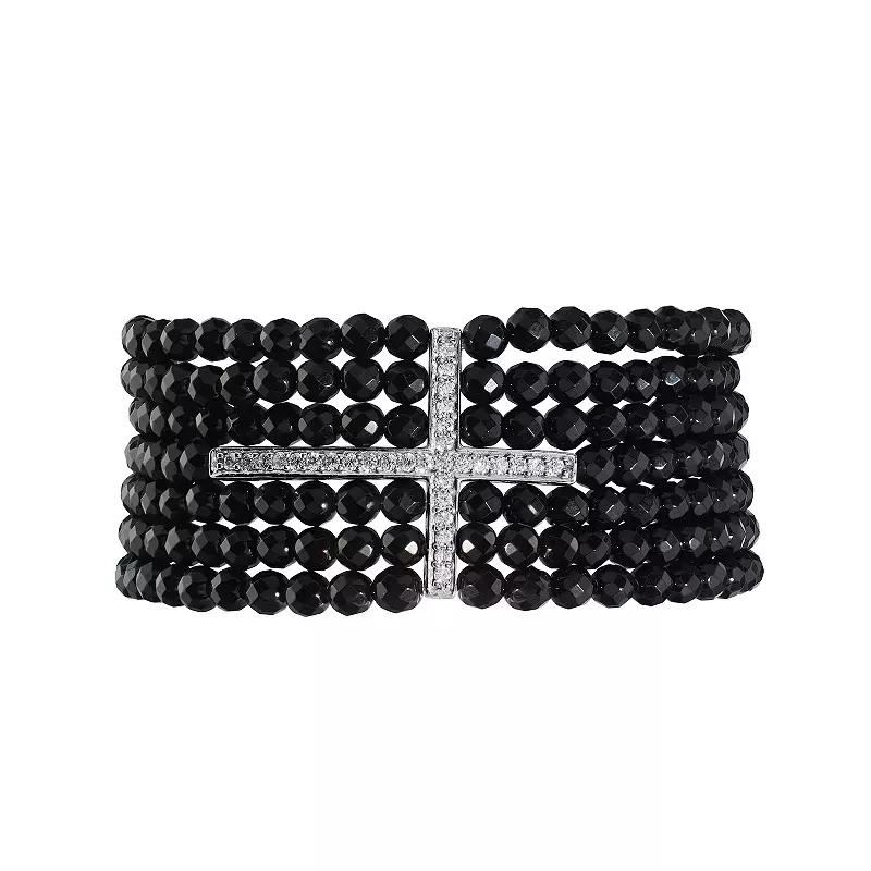 Accessorize in style with this Athra NJ Inc Sterling Silver Cubic Zirconia Cross Black Onyx Beaded Stretch Bracelet. Click on this JEWELRY & WATCHES GUIDE to learn about fit, styles, materials and more! Accessorize in style with this Athra NJ Inc Sterling Silver Cubic Zirconia Cross Black Onyx Beaded Stretch Bracelet. Click on this JEWELRY & WATCHES GUIDE to learn about fit, styles, materials and more! FEATURES Length: 8.5 in. Nickel free Metal: sterling silver Plating: rhodium Finish: texturedSTONE DETAILS Stone type: cubic zirconia, onyx Shape: round Setting: prong Gemstones may have been treated to enhance their appearance. Special care may be required. Please visit our Gemstone Treatment & Special Care Guide for more information. Size: 7. Gender: female. Age Group: adult.