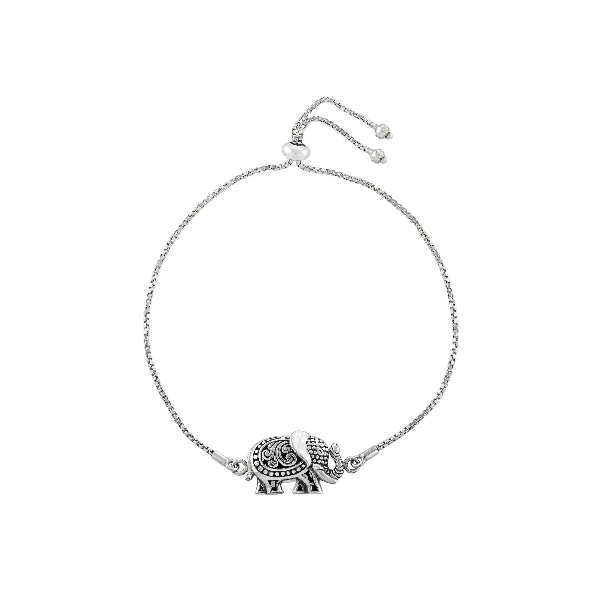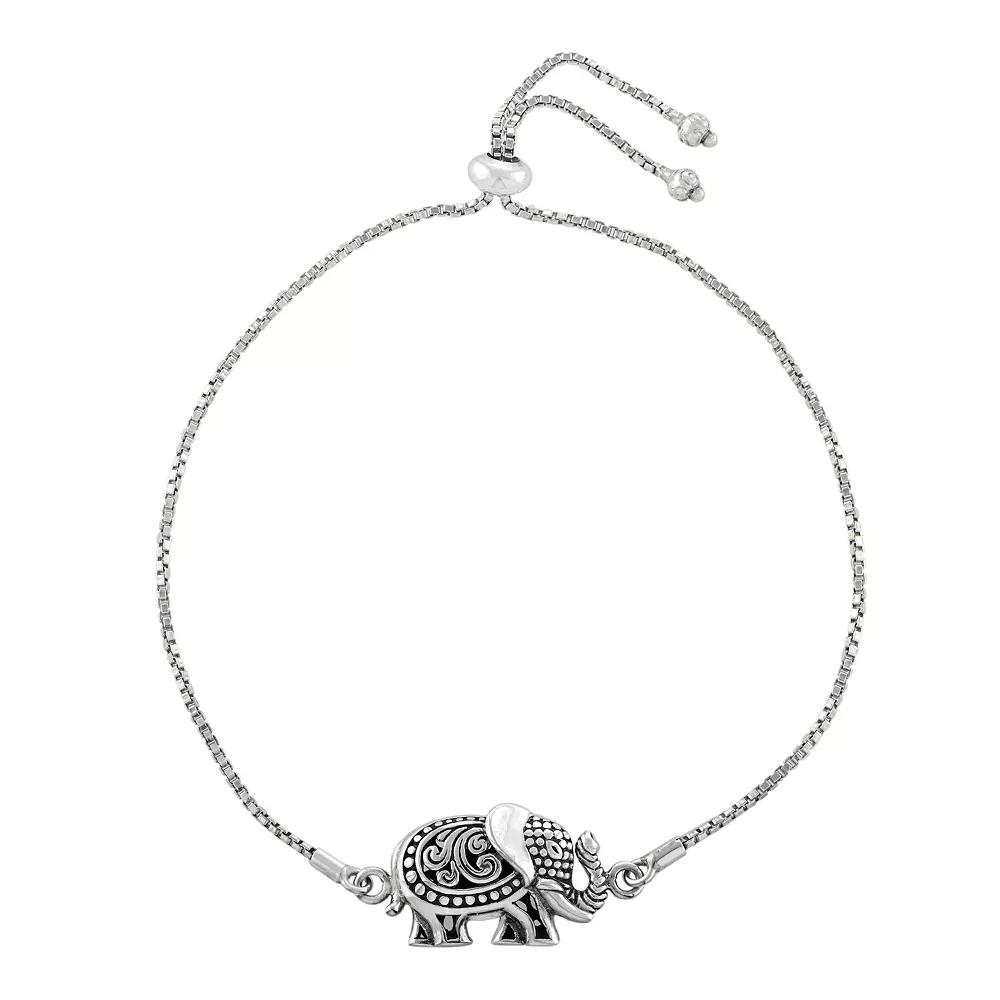 Keep a little reminder of your favorite large animal with you at all times with this adorable sterling silver elephant bracelet. Keep a little reminder of your favorite large animal with you at all times with this adorable sterling silver elephant bracelet. Additional details: adjustable design Metal: sterling silver Length: 10 in. Clasp: lobster-claw Finish: oxidized, polished, textured Please note, due to the high value of this item, a signature may be required upon delivery. Size: 10". Color: White. Gender: female. Age Group: adult.