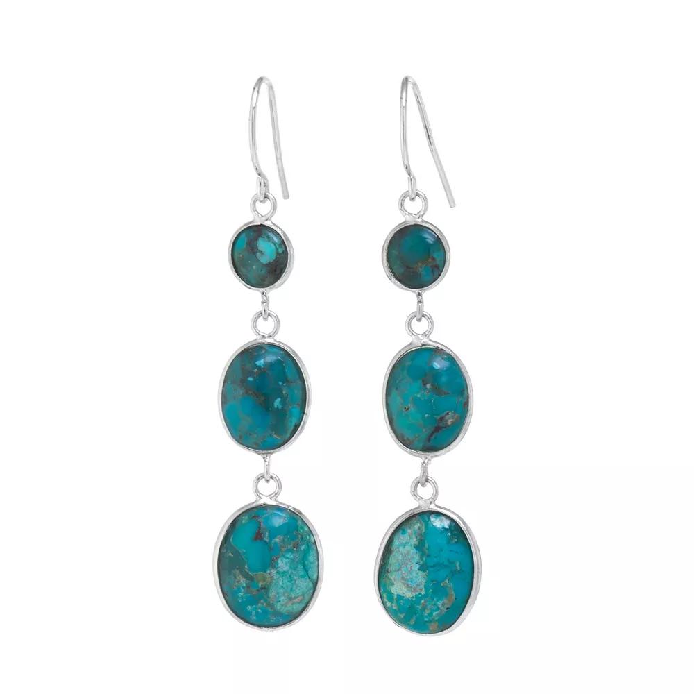 With beautiful enhanced turqoise stones, these drop earrings will add an eye-catching detail to your look. With beautiful enhanced turqoise stones, these drop earrings will add an eye-catching detail to your look. Length: 2.0 in. Backings: fishhook Metal: sterling silver Plating: rhodium Finish: polished Nickel freeSTONE DETAILS Stone: turqoise Total weight: 2 5/8 ct. Setting: bezel Shape: cabochon Please note, due to the high value of this item, a signature may be required upon delivery. Gemstones may have been treated to enhance their appearance. Special care may be required. Please visit our Gemstone Treatment & Special Care Guide for more information. Size: One Size. Color: Multicolor. Gender: female. Age Group: adult.