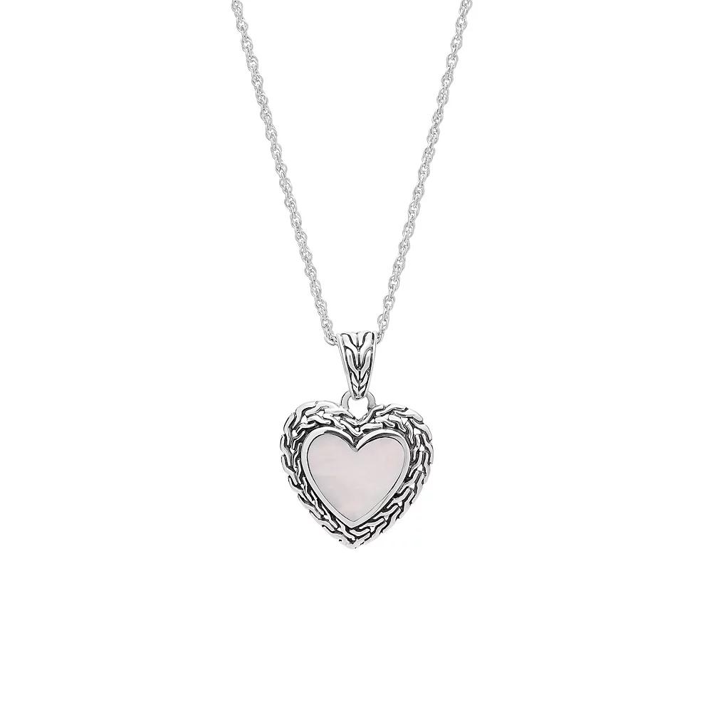 Accent your look with this Athra NJ Inc sterling silver oxidized mother-of-pearl woven heart pendant necklace. Click on this JEWELRY & WATCHES GUIDE to learn about fit, styles, materials and more! Accent your look with this Athra NJ Inc sterling silver oxidized mother-of-pearl woven heart pendant necklace. Click on this JEWELRY & WATCHES GUIDE to learn about fit, styles, materials and more! FEATURES Pendant size: 0.9" x 0.67" Chain length: 16 in. + 2-in. extender Chain type: rope Clasp: lobster-claw Nickel free Metal: sterling silver Finish: oxidized, polished, textured Mother-of-pearl accent Size: 16-18" ADJ. Gender: female. Age Group: adult.