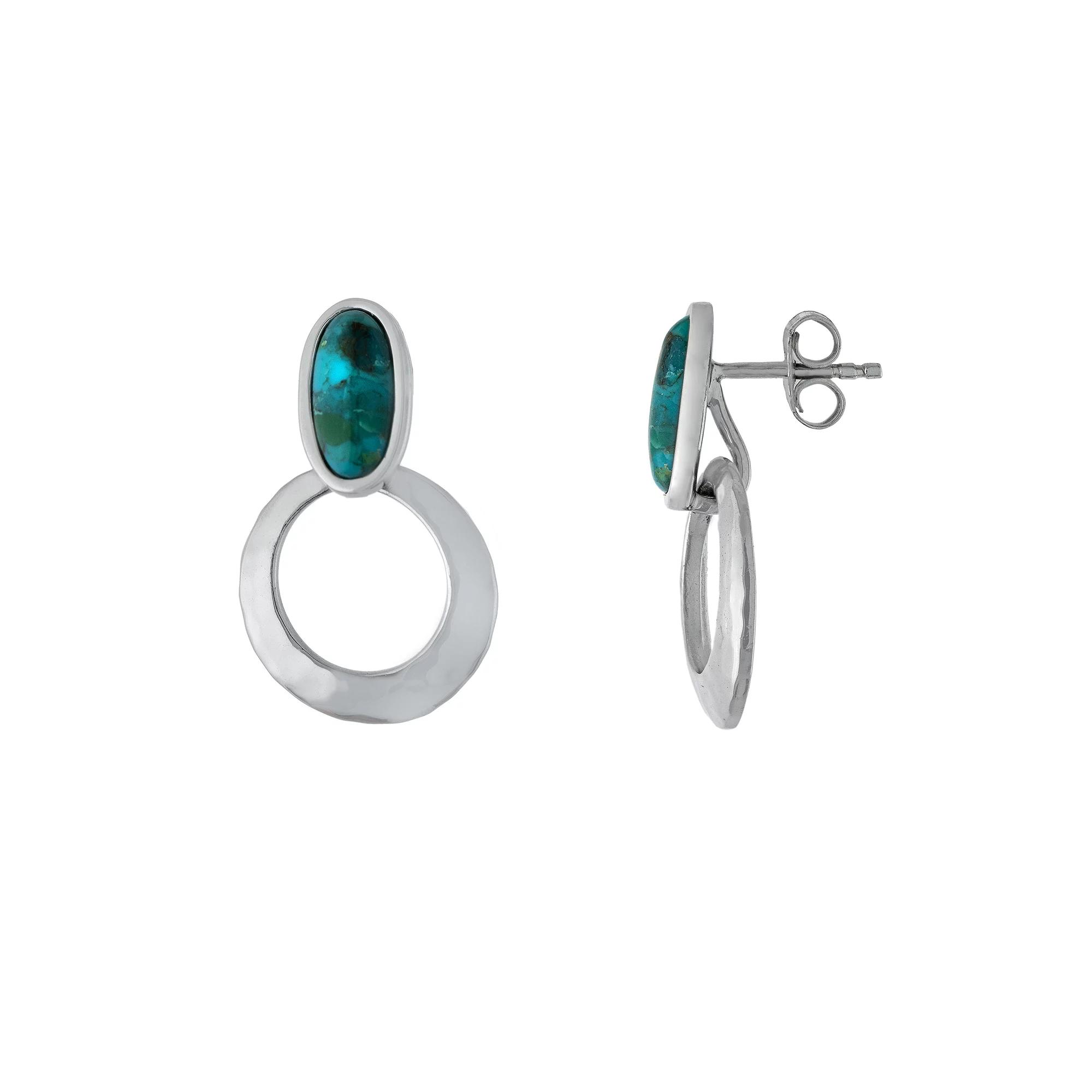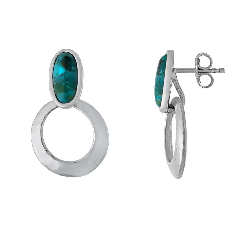 Add some Southwestern flair to your jewelry collection with these beautiful simulated turquoise-accented open circle drop earrings. Add some Southwestern flair to your jewelry collection with these beautiful simulated turquoise-accented open circle drop earrings. Metal: sterling silver Backings: post Plating: rhodium Finish: hammered, polished Earring length: 0.9 in.STONE DETAILS Stone type: simulated turquoise Total weight: 1 7/8 ct. Shape: cabochon Setting: bezel Gemstones may have been treated to enhance their appearance. Special care may be required. Please visit our Gemstone Treatment & Special Care Guide for more information. Size: One Size. Gender: female. Age Group: adult.