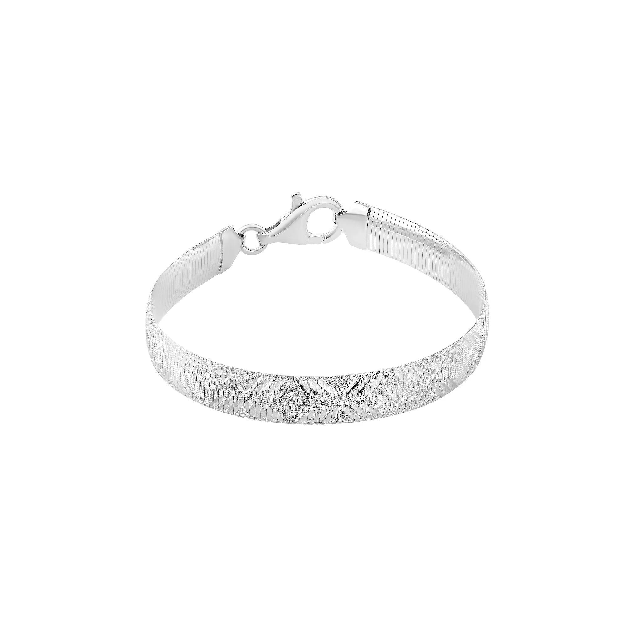Accent your elegant ensemble with this sterling silver textured omega bracelet. Accent your elegant ensemble with this sterling silver textured omega bracelet. FEATURES Length: 7.25 in. Clasp: lobster-claw Metal: sterling silver Plating: rhodium Finish: diamond-cut, polished Nickel free Size: 7.25. Color: White. Gender: female. Age Group: adult.