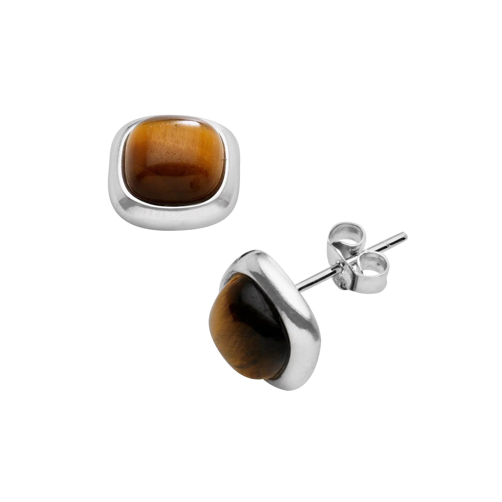 Natural flair. You'll love the earthy elegance of these sterling silver tigereye stud earrings. Square tigereye cabochons radiate golden-brown hues. Sterling silver construction promises lasting shine. Post backings ensure a secure fit. Details: 3/8-in. diameter Pierced Sterling silver Size: One Size. Gender: female. Age Group: adult.
