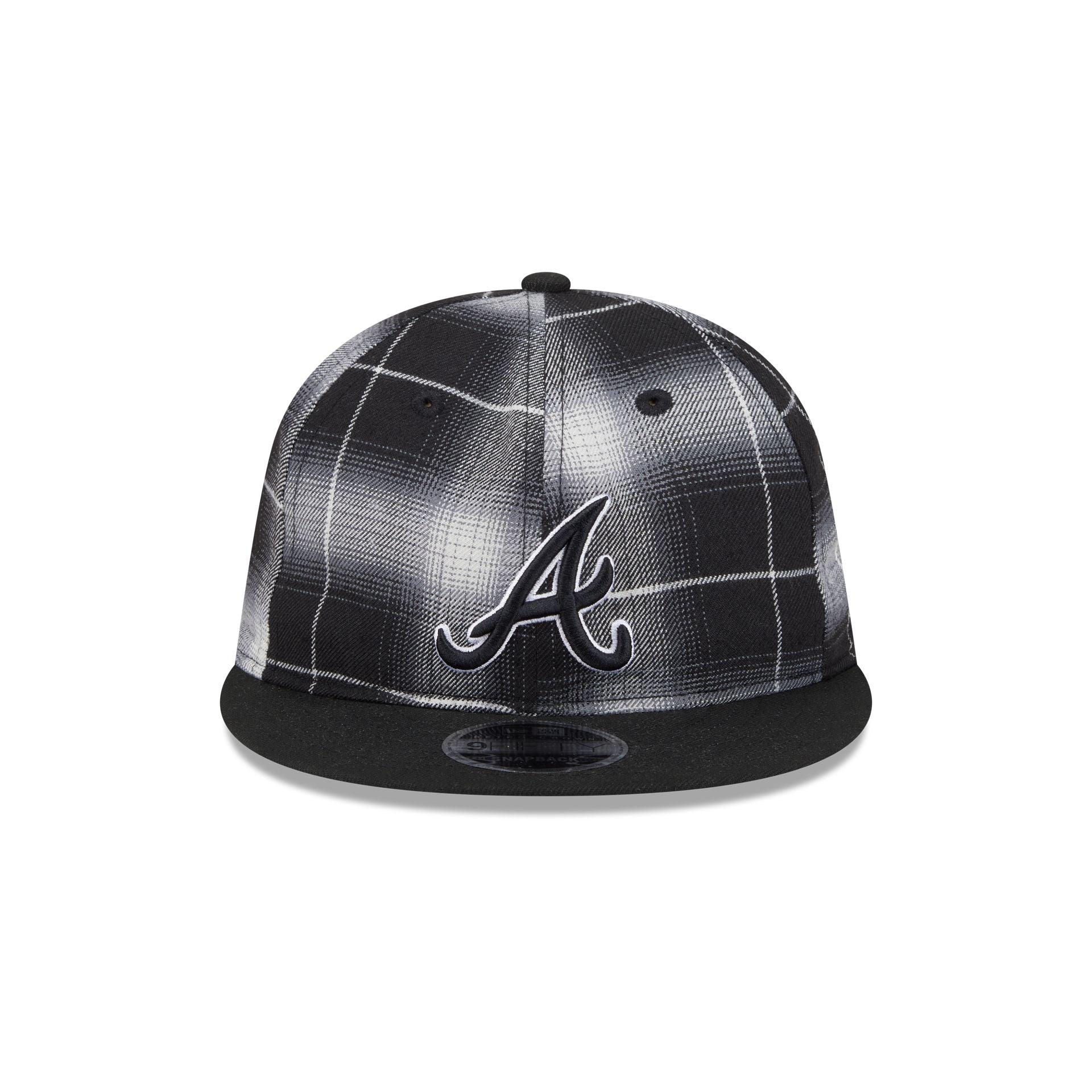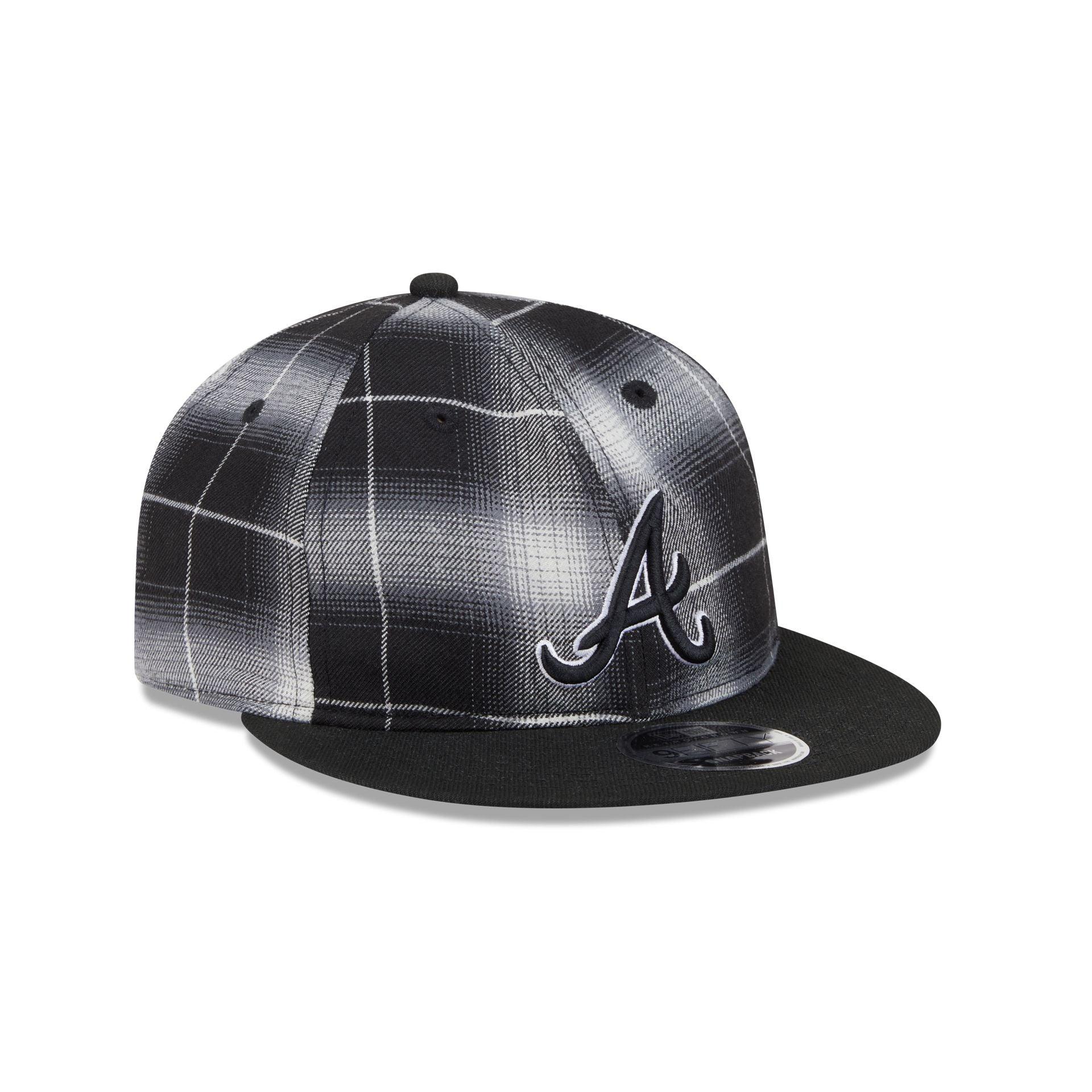 Atlanta Braves Black and White Plaid Retro Crown 9FIFTY Snapback Hat Male