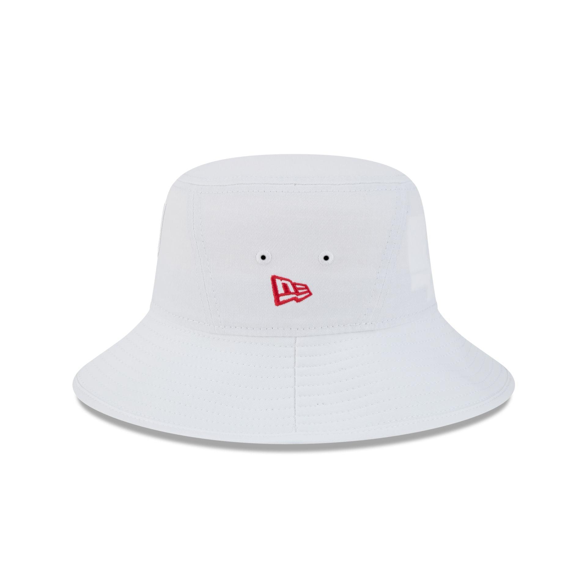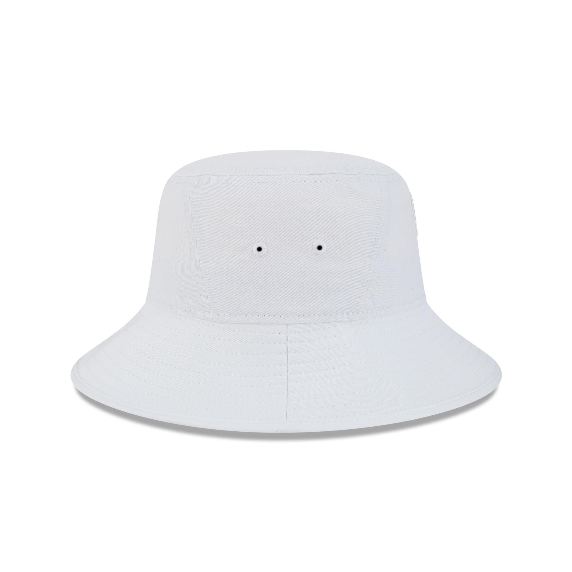 The Atlanta Dream Optic White Bucket Hat features an embroidered Dream logo at the front with a matching New Era Flag at the left-wear side.