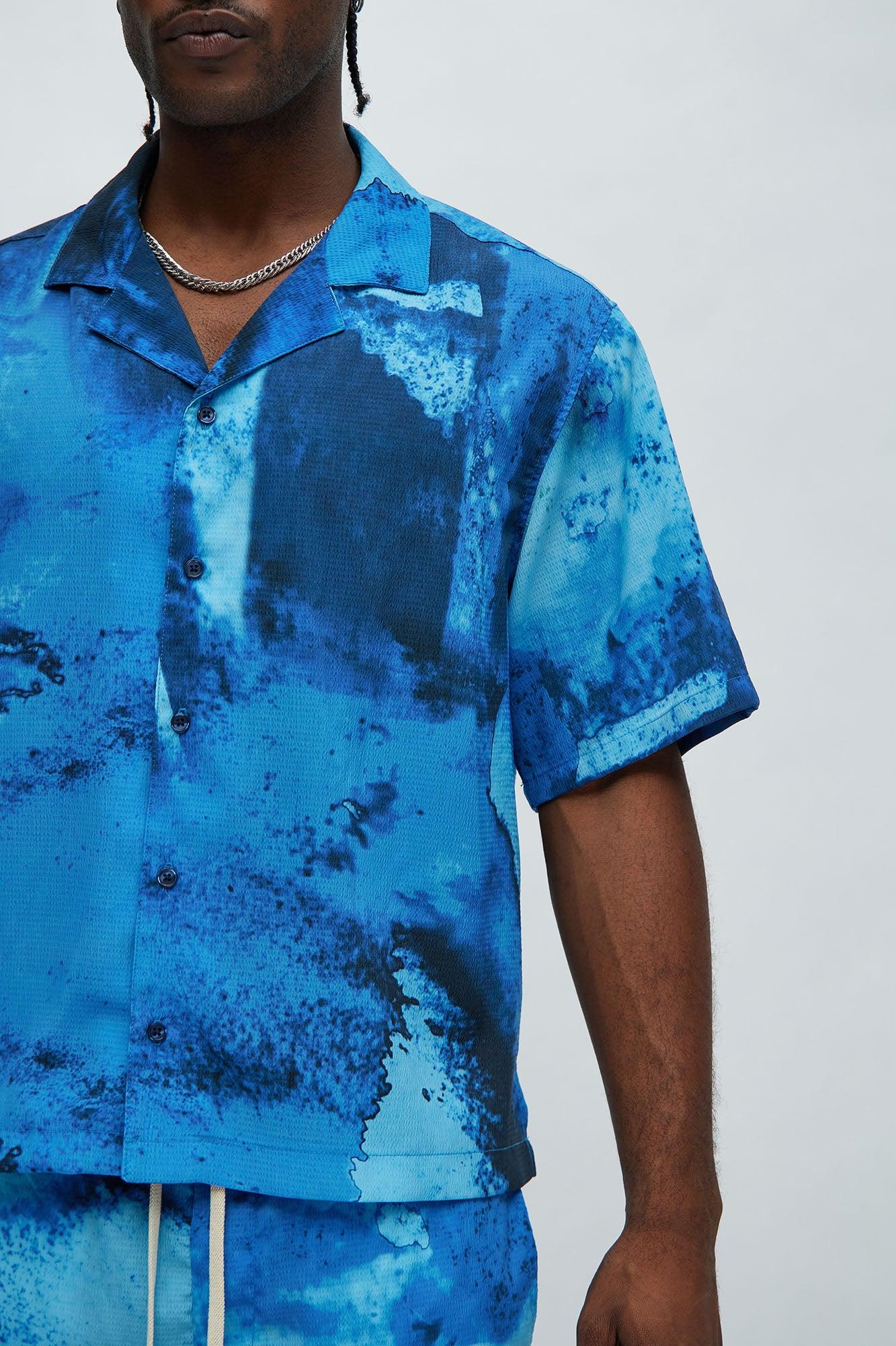 Available In Blue. Fold Down Collar Front Button Closure Short Sleeve Bottom Side Slit Pair With "Atlantic Textured Warmup Shorts" Shell: 100% Polyester Imported California Proposition 65 WARNING: Cancer and Reproductive Harm - www.P65Warnings.ca.gov.