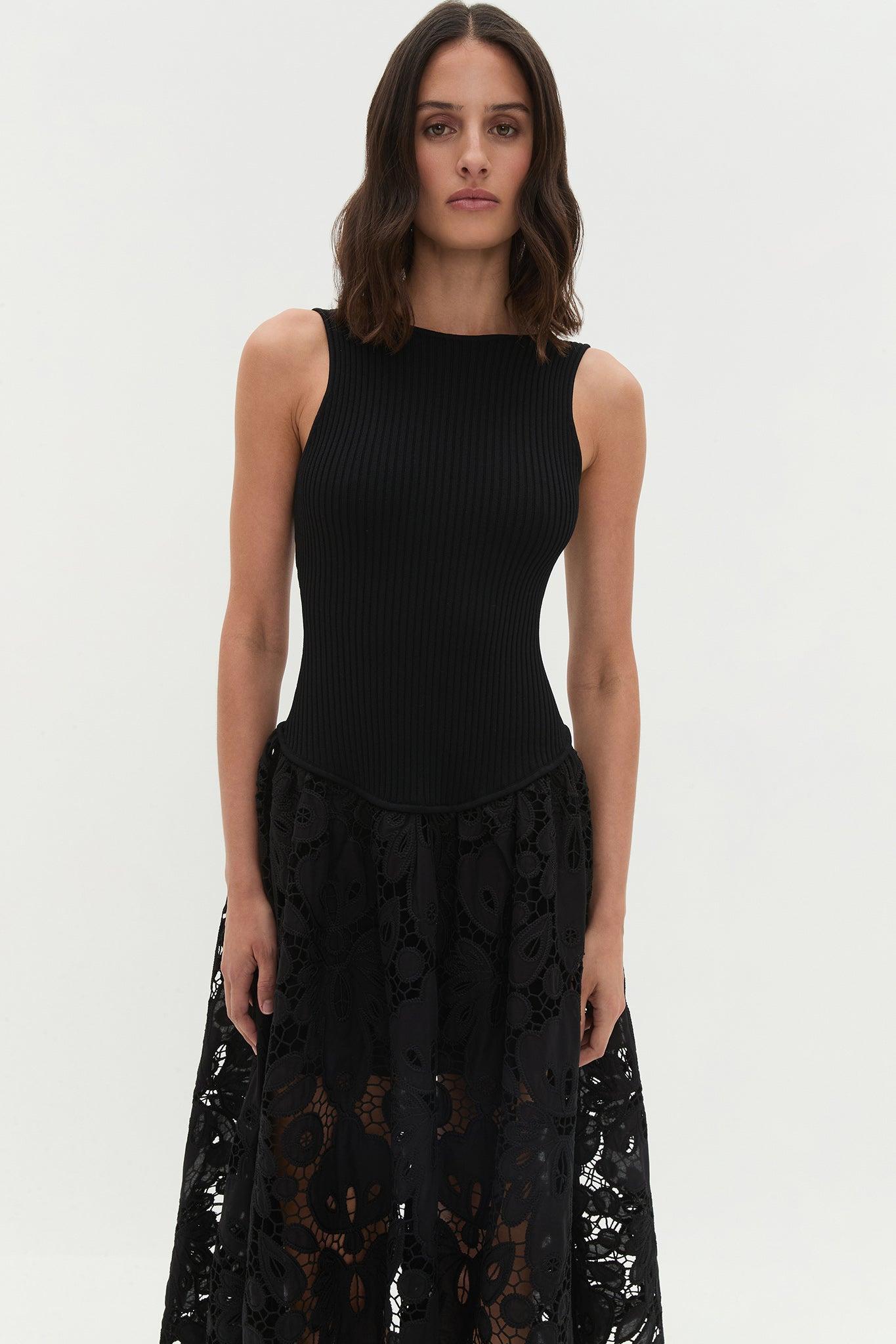 Atlas Knit Midi Dress-BLACK / L