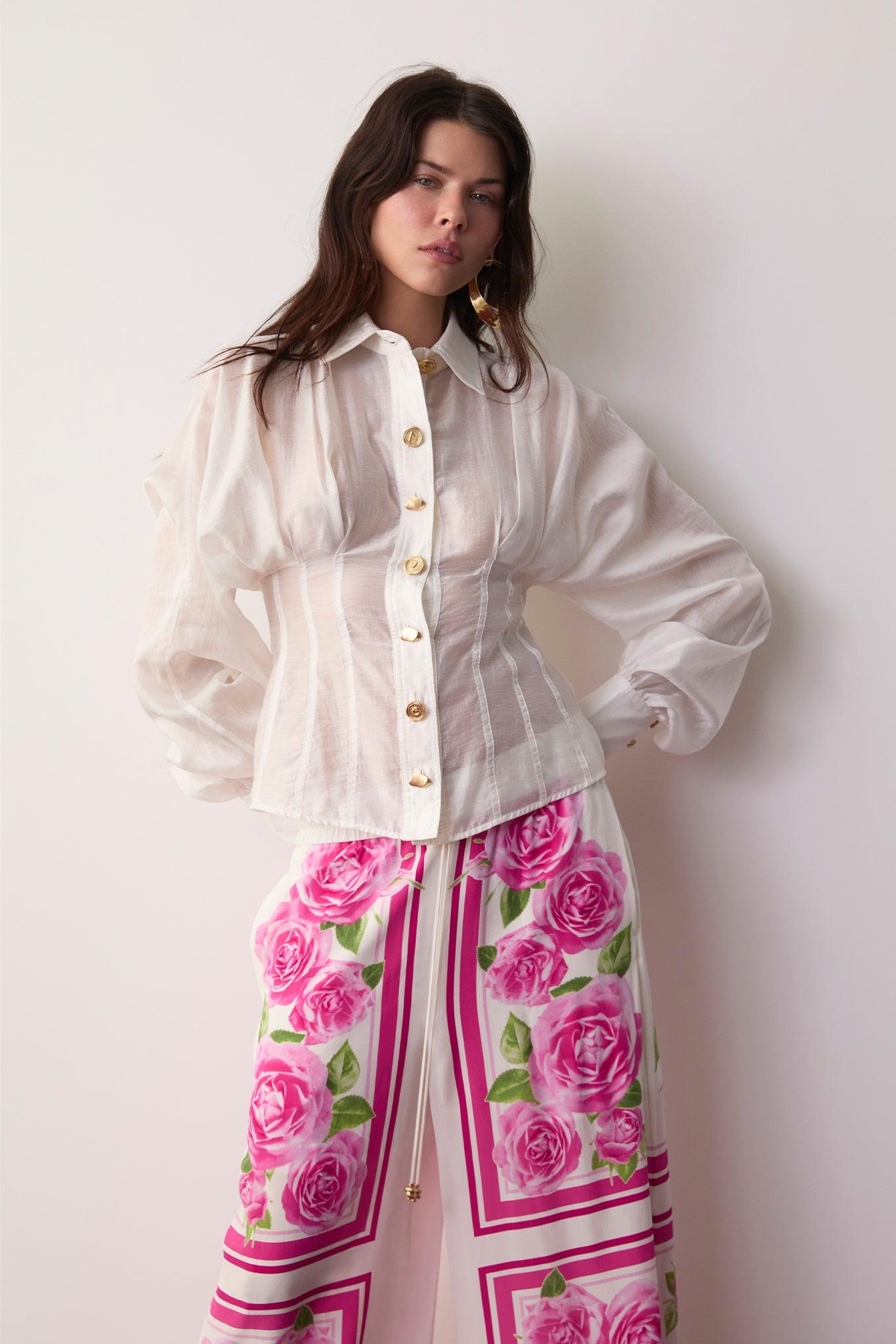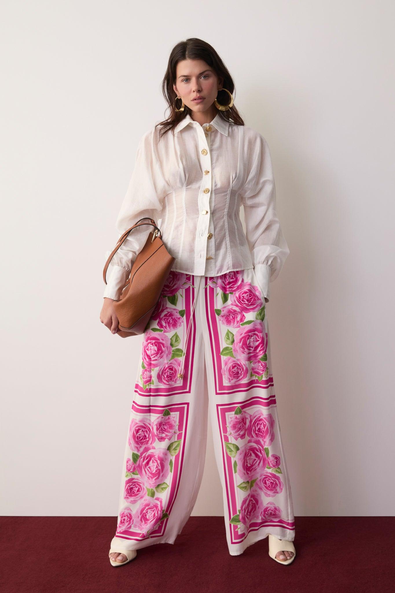 PRODUCT DETAILS Women’s silk pants Relaxed, high-waisted fit Stretch waistband Gold tipped drawcords Side pockets Short length lining 100% Silk Dry Clean Only S...