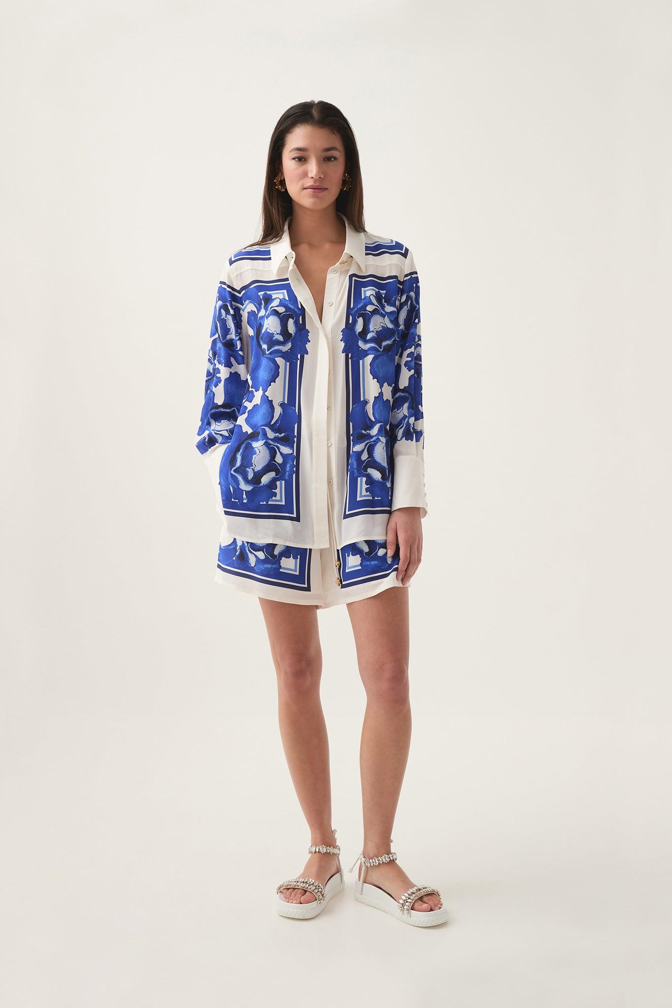 PRODUCT DETAILS Women’s silk shirt Relaxed fit Shirt collar with accent button Front button placket Straight sleeves with exaggerated cuffs Side splits at hem 100% Silk Gentle and Low Heat Dry Clean Only Shop All Tops SIZE AND FIT Model wears a size AU 8/S Height: 178cm/ 5’10 Bust: 76cm Waist: 58cm Hips: 86cm