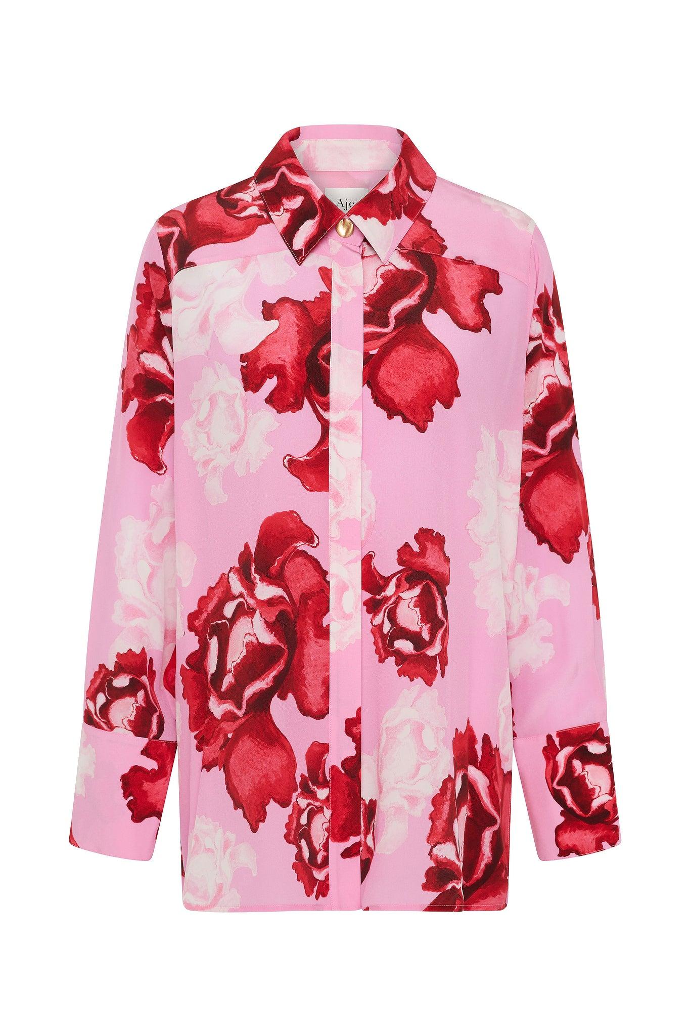PRODUCT DETAILS Women’s silk shirt Relaxed fit Shirt collar with accent button Front button placket Straight sleeves with exaggerated cuffs Side splits at hem 100% Silk Gentle and Low Heat Dry Clean Only Shop All Tops SIZE AND FIT Model wears a size AU 8/S Height: 178cm/ 5’10 Bust: 76cm Waist: 58cm Hips: 86cm