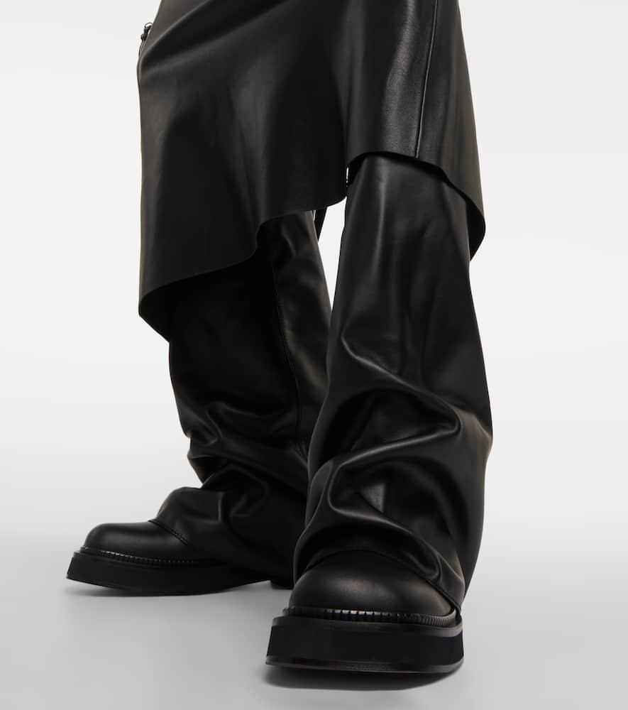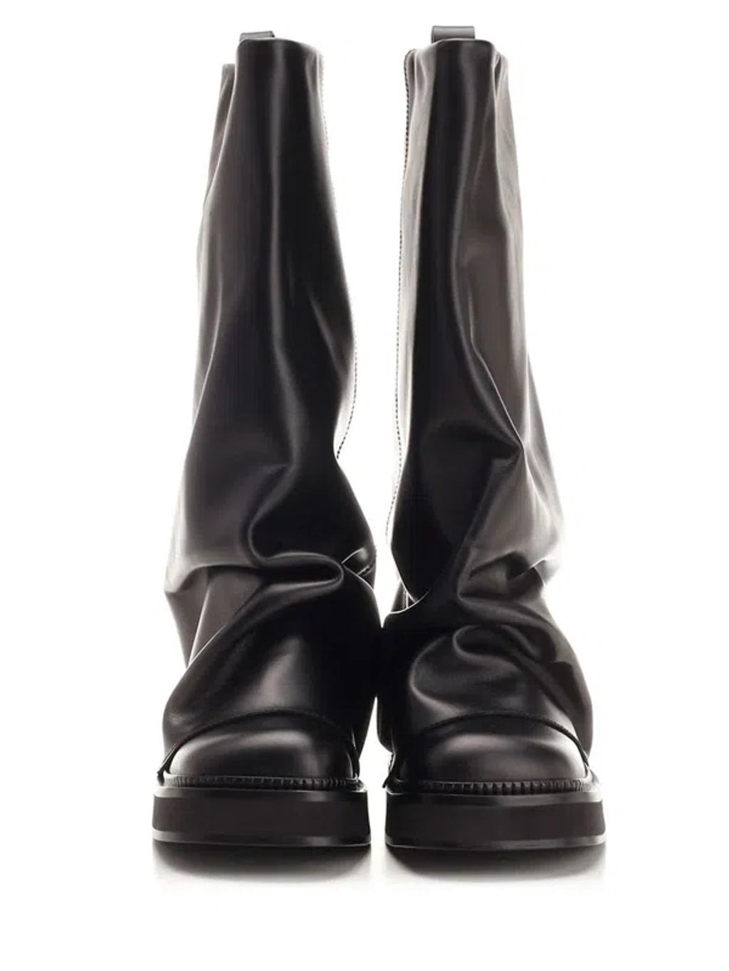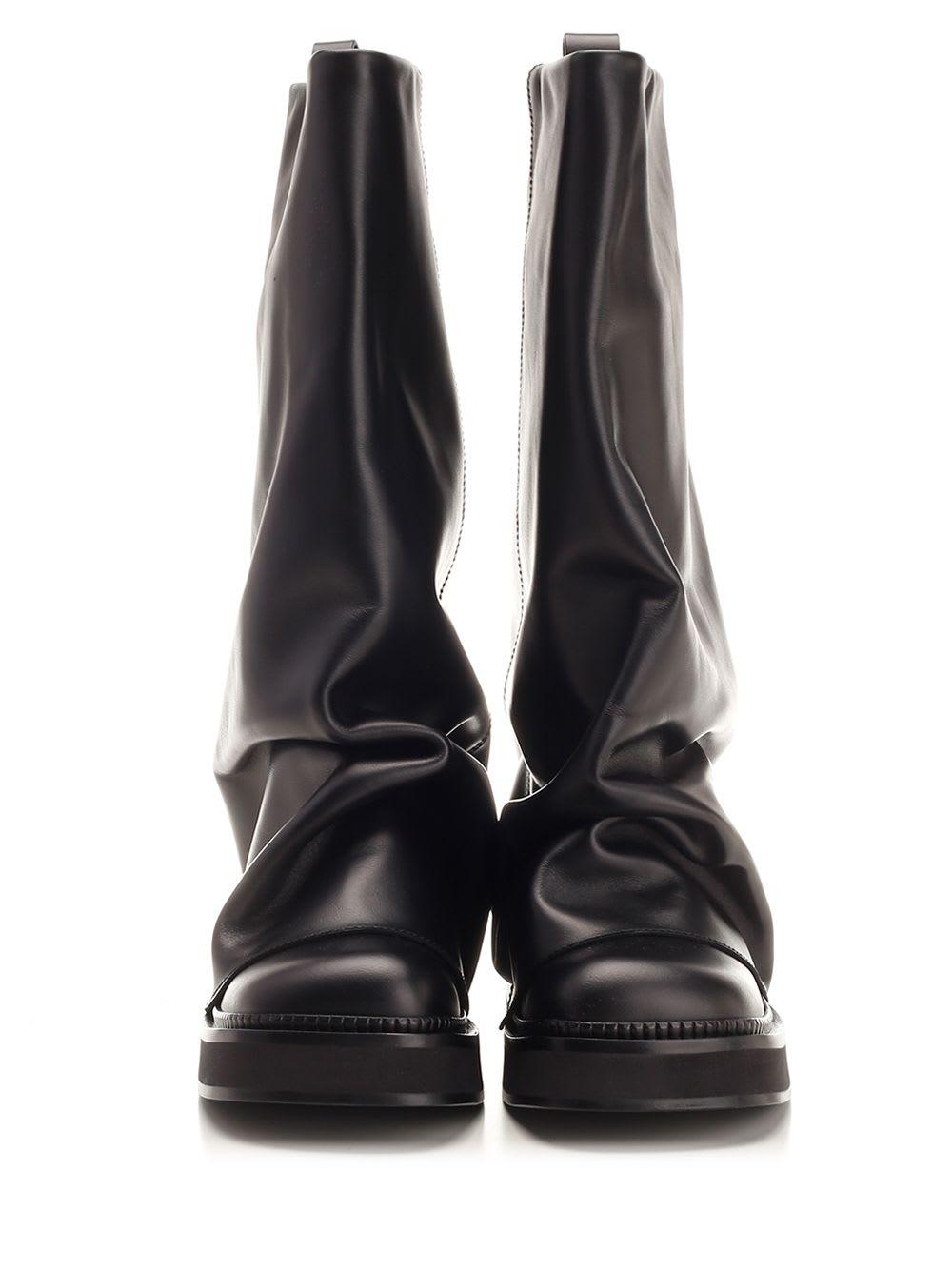 Shop Attico Robin Black Boots With Square Toe And Logo Plaque On The Rear In Leather Woman from 800+ stores, starting at $424. THE ATTICO Robin Combat Boot in Black - Black. Size 38 (also in 36.5, 37, 37.5, 38.5, 40, 41). Leather upper with leather sole. Made in Italy. Pull-on styling. Leather footbed and lining. Layered and ruched styling. Back pull-tab with silver-tone Attico hardware. Slanted square toe. Approx 32mm/ 1.25 inch heel Approx 25mm/ 1 inch platform Approx 330mm/ 13 inch shaft Shaft measures approx 12.56 in circumference. ATTF-WZ110. 241WS798 - L019 - 100. About the designer: Attico represents a time where glamour ruled and decadence was a way of life. Derived from the Italian word for penthouse, Attico is reviving the way a woman gets dressed. Launched in 2016, Italian designers Giorgia Tordini and Gilda Ambrosio partnered up to combine their contrasting aesthetics to push the boundaries of specialty couture. Inspired by vintage interiors and seductive boudoirs - expect pieces dripping in artisanal detail, opulent evening gowns, lavishly bold patterned silk robes, and rich textured velvets.