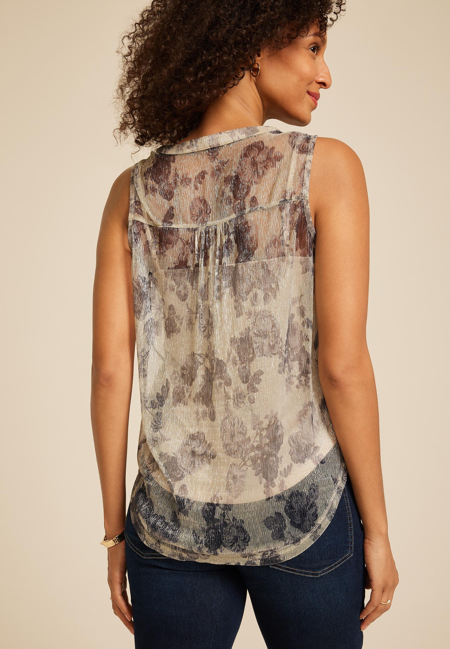 Meet the Atwood Floral Shimmer Tank—a dreamy blend of elegance and ease. With its sheer metallic finish and soft floral pattern, this sleeveless top brings a touch of romance to any outfit. Pair it with sleek denim or tailored trousers for a look that transitions effortlessly from day to night. .mar-pdp-section .mar-product-description {color: #000;}.mar-pdp-section .mar-product-description ul, .mar-pdp-section .mar-product-description ul>li {margin-left: 10px;padding-left: 10px;}.mar-pdp-section .mar-product-description .mar-product-description-content ul li{list-style-type: disc;margin: 0 0 5px;padding-left: 5px;}.mar-pdp-section .mar-product-description p {color: #000;padding: 5px 0;}@media only screen and (max-width: 1023px){.mar-pdp-section .mar-product-description .mar-product-description-content ul li{list-style-type: disc !important;} .mar-pdp-section .mar-product-description .mar-product-description-content .mar-tab-content ul{padding-left: 10px;}.mar-pdp-section .mar-product-description .mar-product-description-content .mar-tab-content {font-weight: 300;}} Features: sheer overlay metallic shimmer with romantic floral design fabric lined sleeveless easy to layer v neck