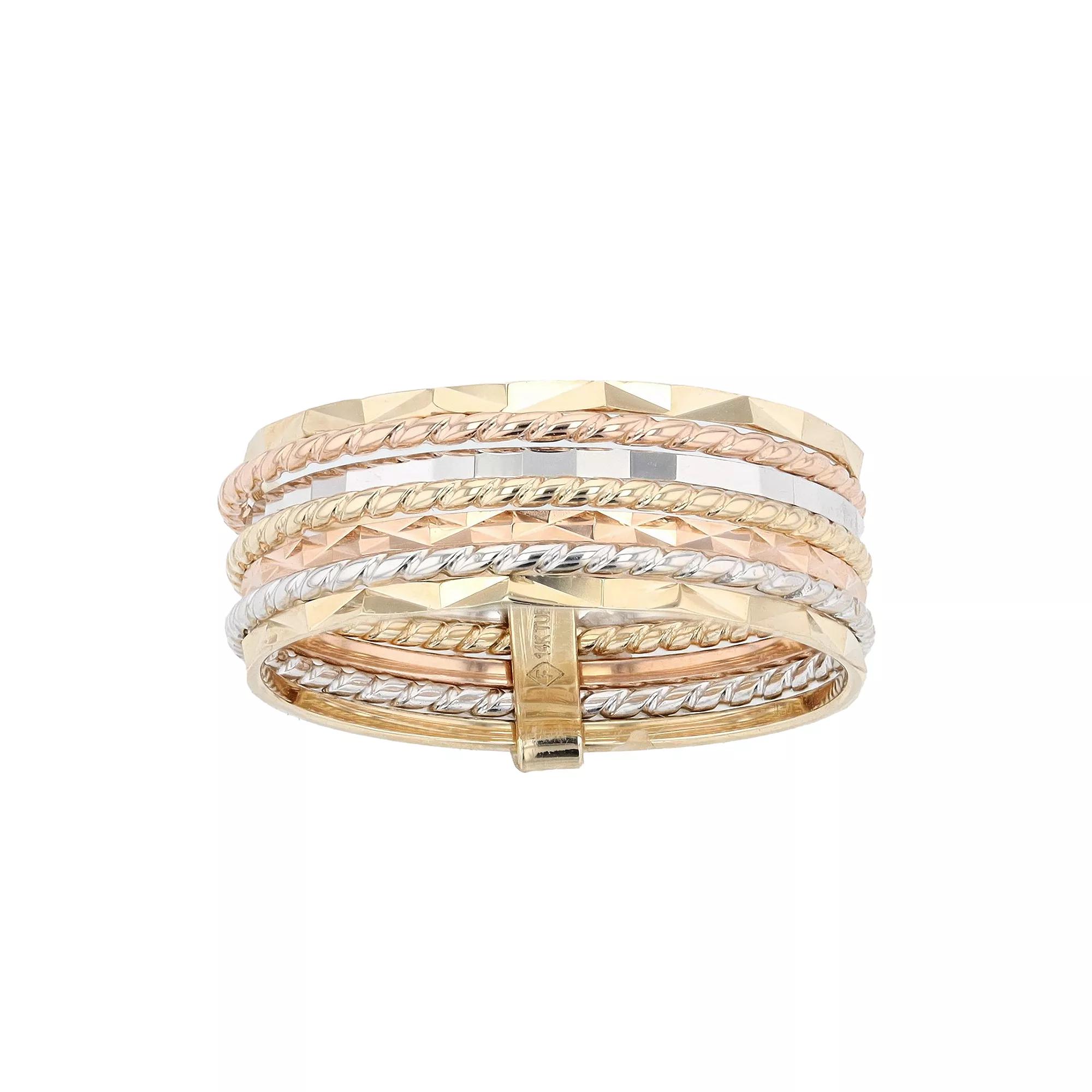 Featuring a stylish combination of textured and twisted bands made from 14k gold, this Au Naturale seven days ring is a beautiful accessory. Featuring a stylish combination of textured and twisted bands made from 14k gold, this Au Naturale seven days ring is a beautiful accessory. Nickel free Metal: 14k gold, 14k rose gold, 14k white gold Packaging: boxed Width: 0.26 in. Finish: polished Color: Multicolor. Gender: female. Age Group: adult.