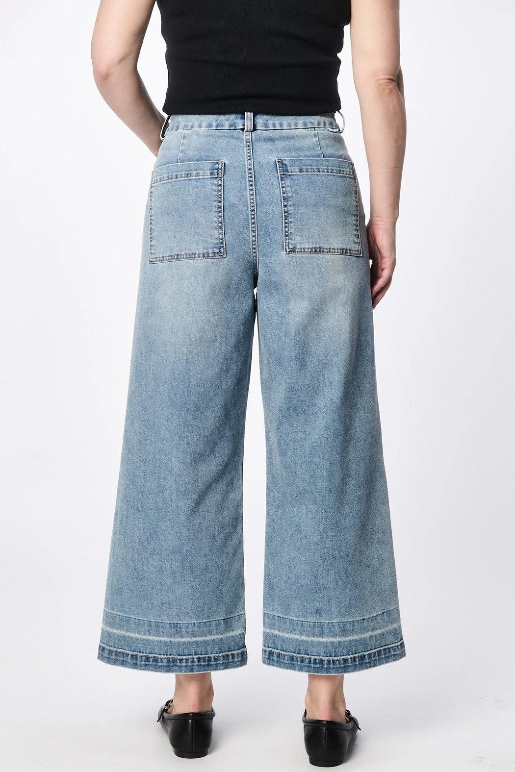 Adorn your wardrobe with the Audrey wide leg jeans in Hillcress, featuring a sophisticated high-rise and clean hem design, expertly crafted from a premium blend for exceptional comfort and flexibility.