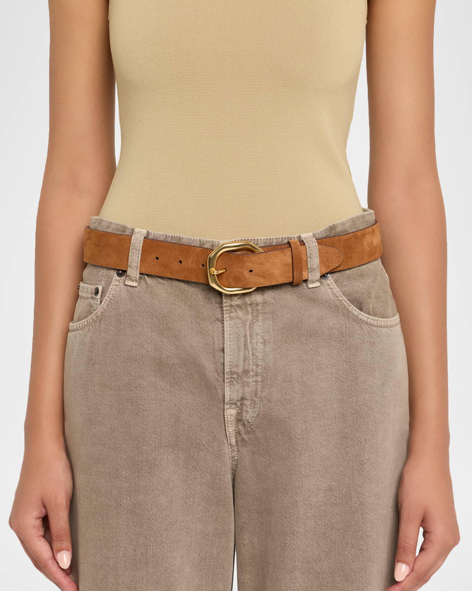 Square-Buckle Suede Belt