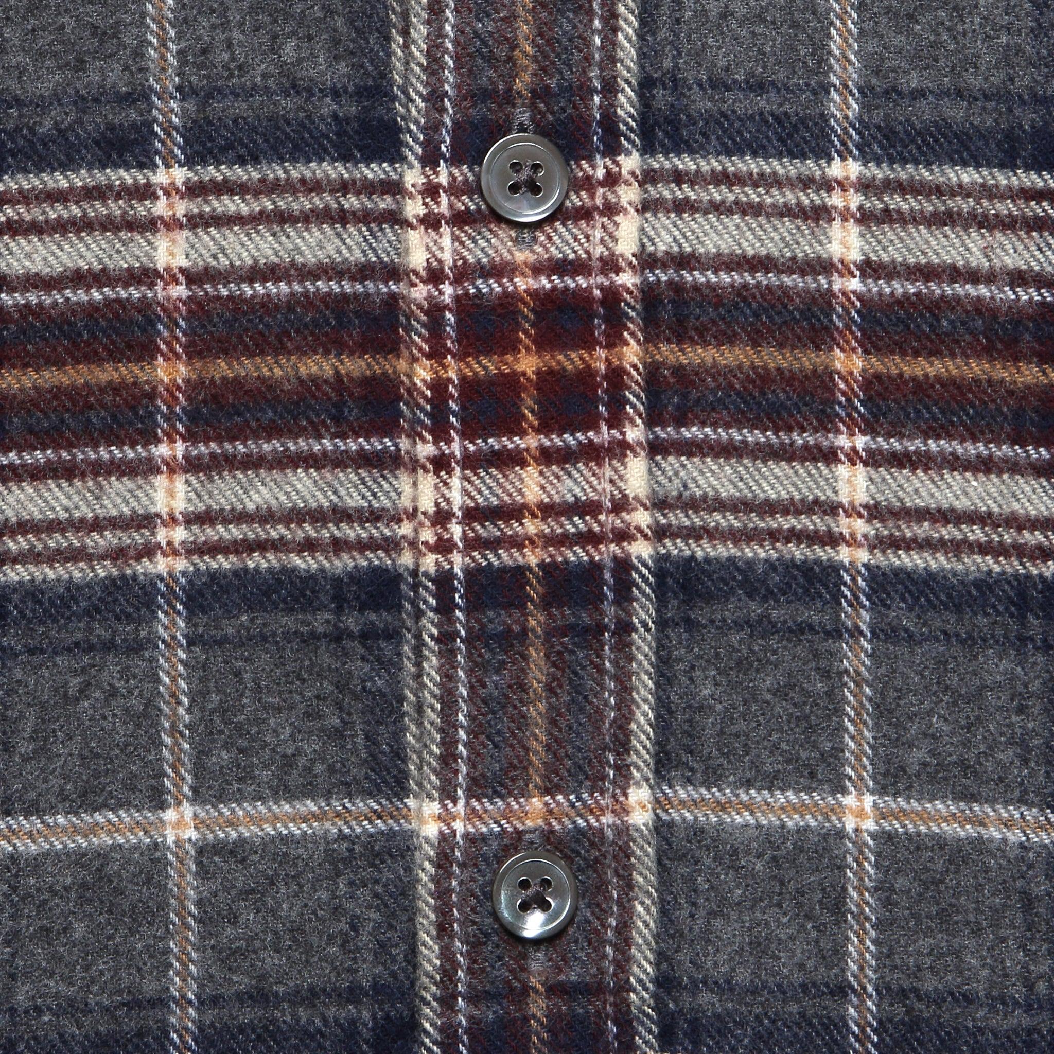 The Augusta Shirt from Portuguese Flannel is made with soft, midweight cotton flannel that’s been lightly brushed and woven with a classic plaid pattern perfect for cooler weather. It’s tailored with a traditional fit that runs true to size and comes detailed with a single chest pocket, a black pearl button placket, and an Oxford collar for a refined finish.