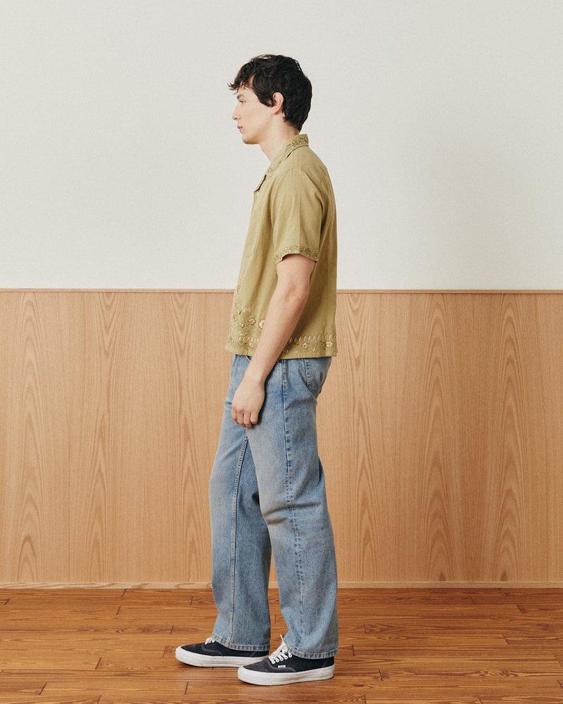 A breezy short-sleeve shirt cut from lightweight cotton, featuring a relaxed silhouette and embroidery at the collar, sleeve, and hem. An easygoing piece with just the right amount of character. 100% Cotton 105 GSM Embroidery on the collar, sleeve, and bottom hem Regular Fit Single Chest Pocket Camp Collar Made with