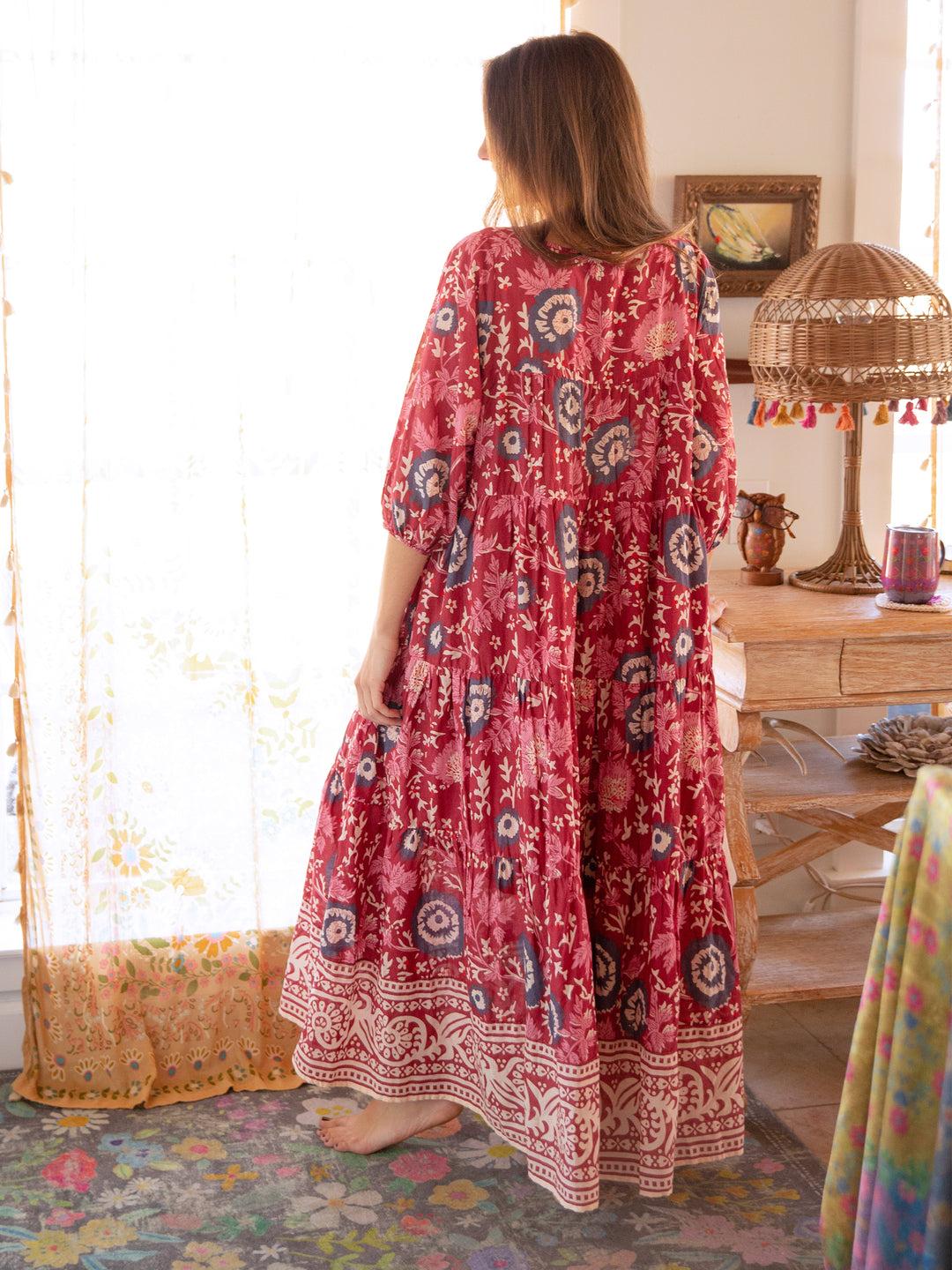 Auguste Cotton Maxi Dress - Red Pink Floral