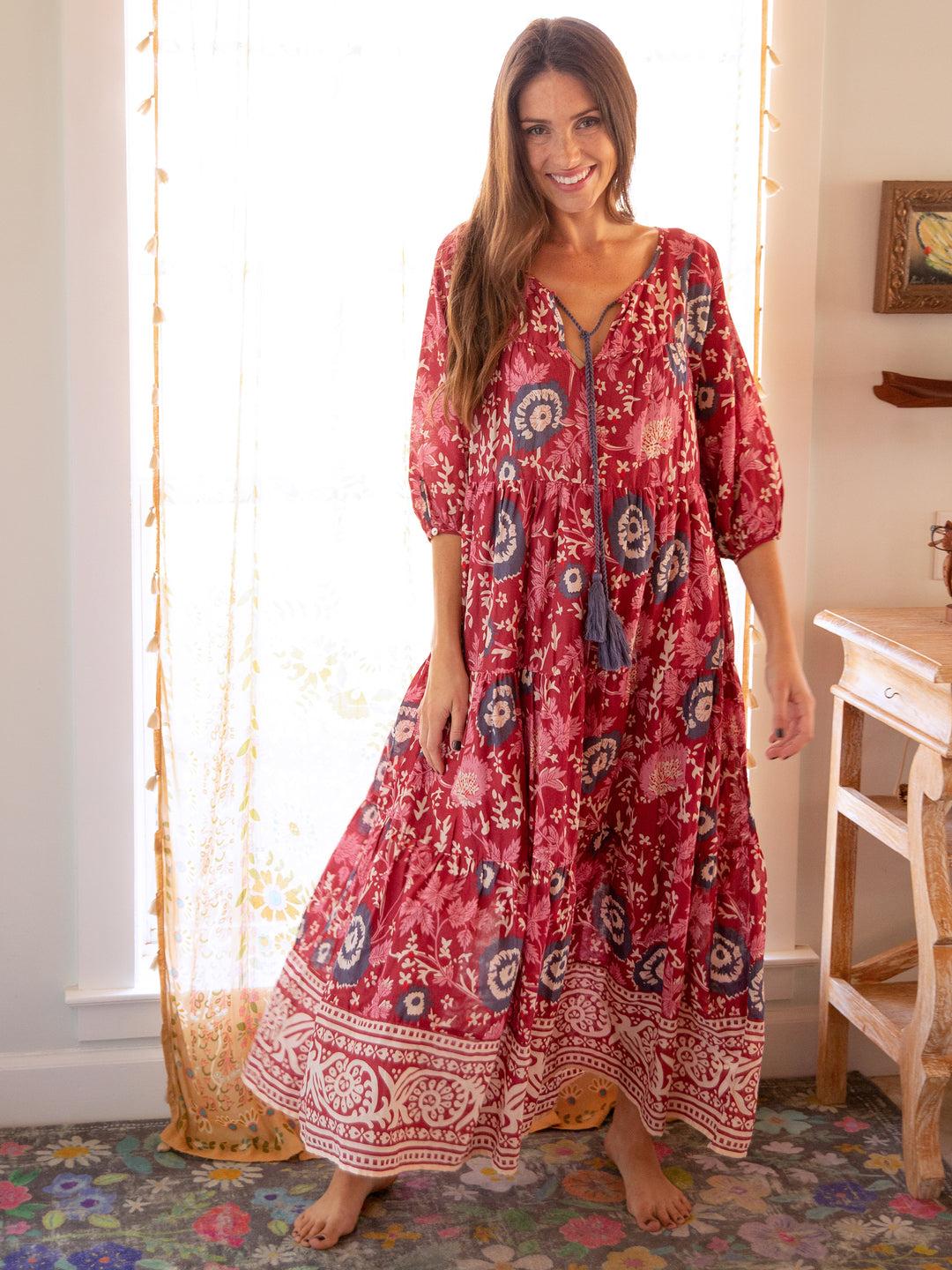 Auguste Cotton Maxi Dress - Red Pink Floral