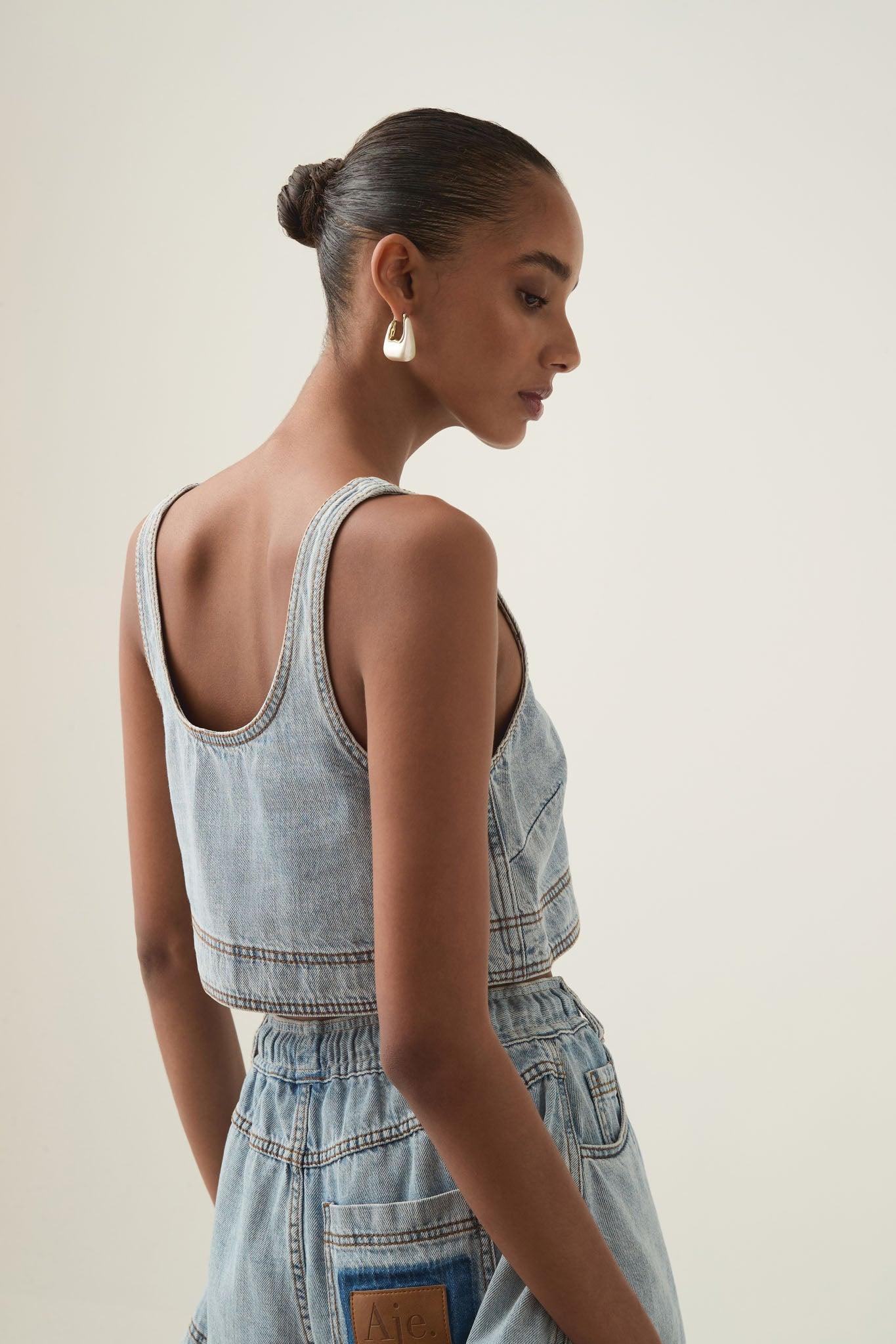 PRODUCT DETAILS Women's lightweight denim top A-line shape Scoop neckline Tank straps Logo patch 100% Cotton Designed to Fade Delicate Cold Hand Wash Shop All Tops SIZE AND FIT Model wears a size AU 8/S Height: 175cm/ 5’9 Bust: 81cm Waist: 60cm Hips: 89cm