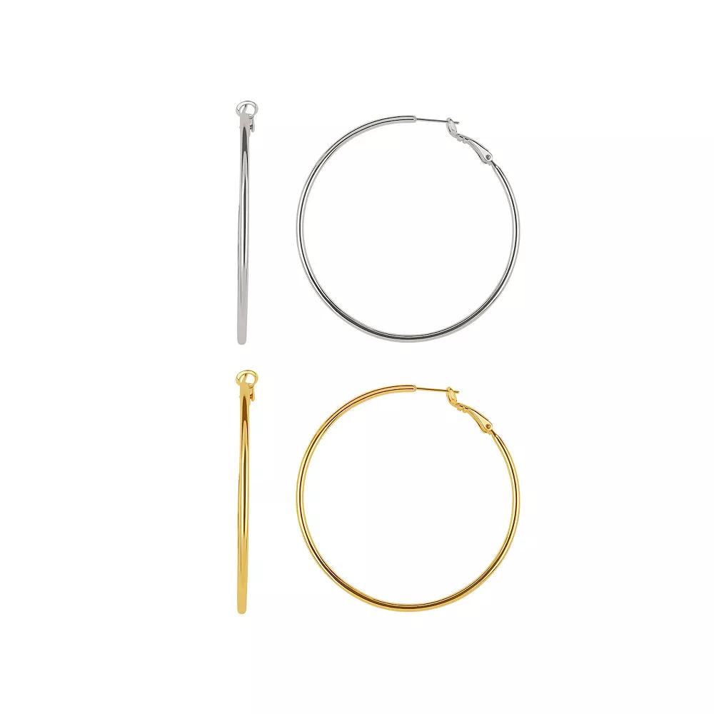 Polished to perfection, this Aurielle tube hoop earring set beautifully enhances your look. Polished to perfection, this Aurielle tube hoop earring set beautifully enhances your look. Nickel free Metal: brass Backings: paddle back Plating: 18k gold flash plated, silver tone Packaging: boxed Finish: polished Length: 60 mm Size: One Size. Color: Multicolor. Gender: female. Age Group: adult. Material: Silver Plate Gold Plate Brass.