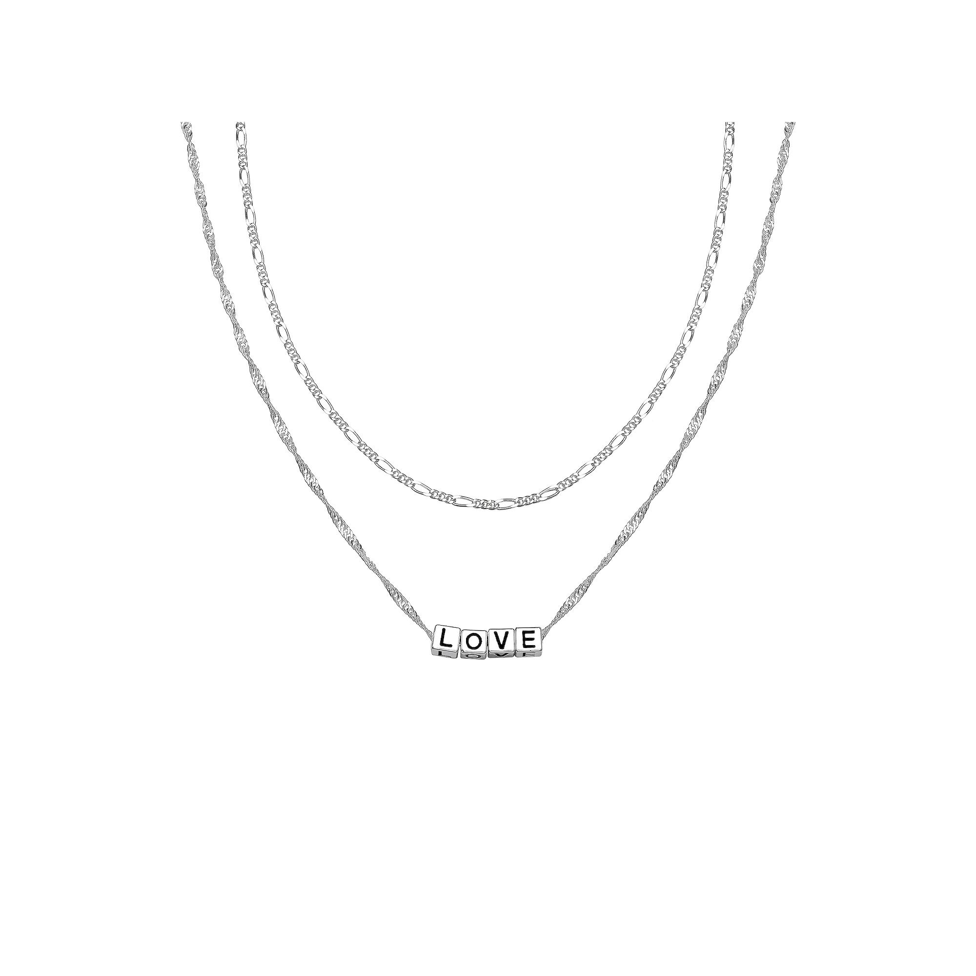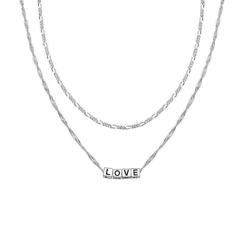 This Aurielle Love chain necklace set is a charming and stylish addition to your jewelry collection. This Aurielle Love chain necklace set is a charming and stylish addition to your jewelry collection. Includes: 2 necklaces Chain length: 16 in. + 2-in. extender Chain type: figaro, Singapore 2mm / 1.7mm Nickel free Metal: brass Plating: fine silver Finish: polished Packaging: boxed Size: 16. Color: Grey. Gender: female. Age Group: adult.