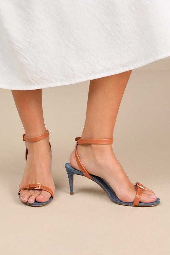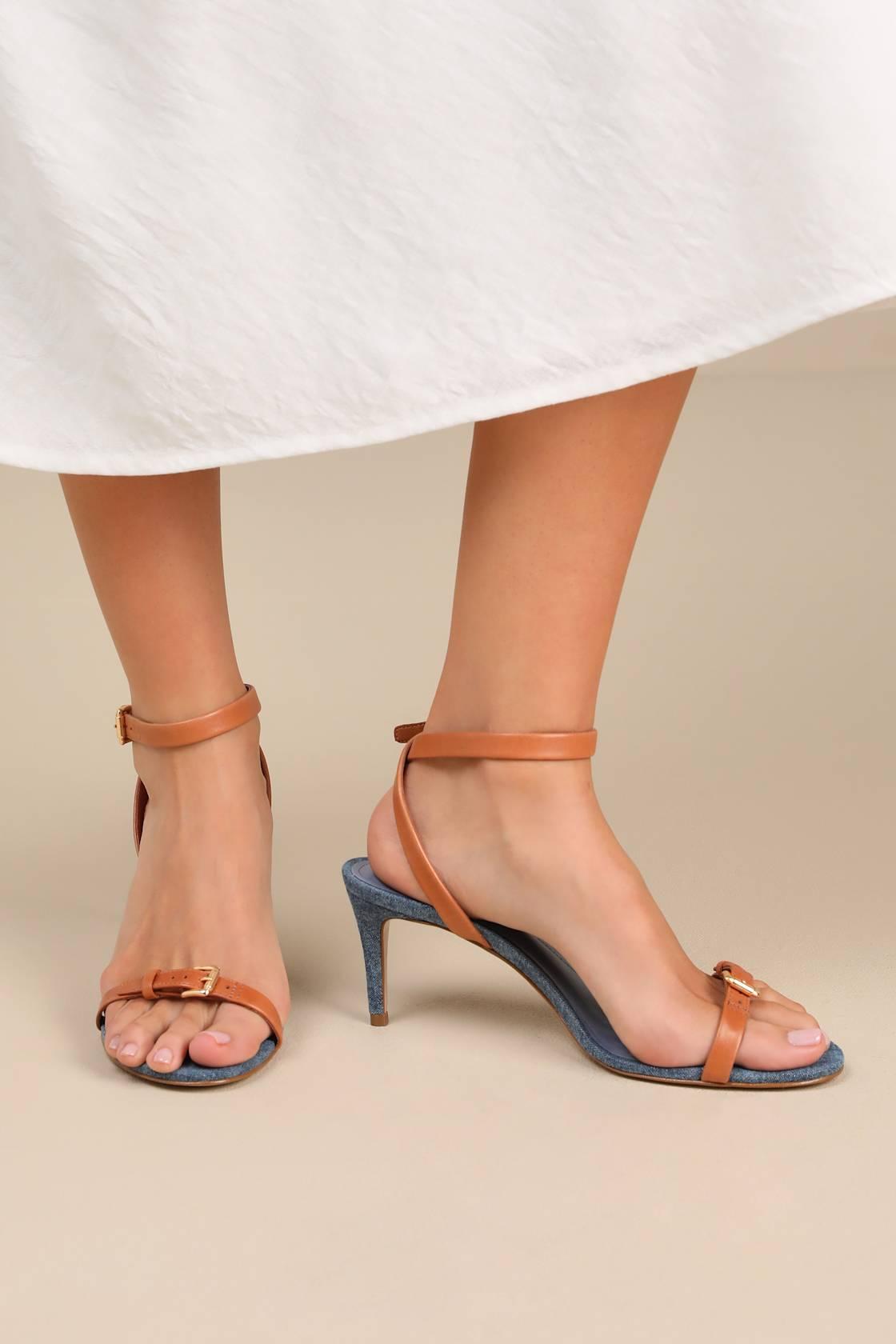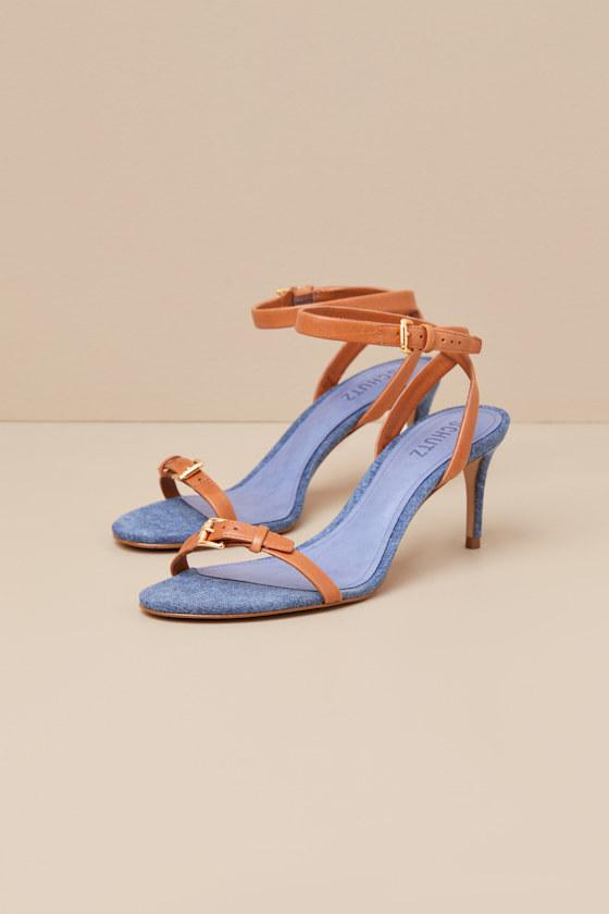 The Schutz Aurora Mid Blue Ankle Strap High Heel Sandals are everything you need to leave a lasting impression, effortlessly! These chic heels have a denim-like fabrication that forms an almond-shaped footbed, paired with genuine leather straps that create an adjustable buckled toe strap and a matching ankle strap. The effortless stiletto heel completes the sleek design.