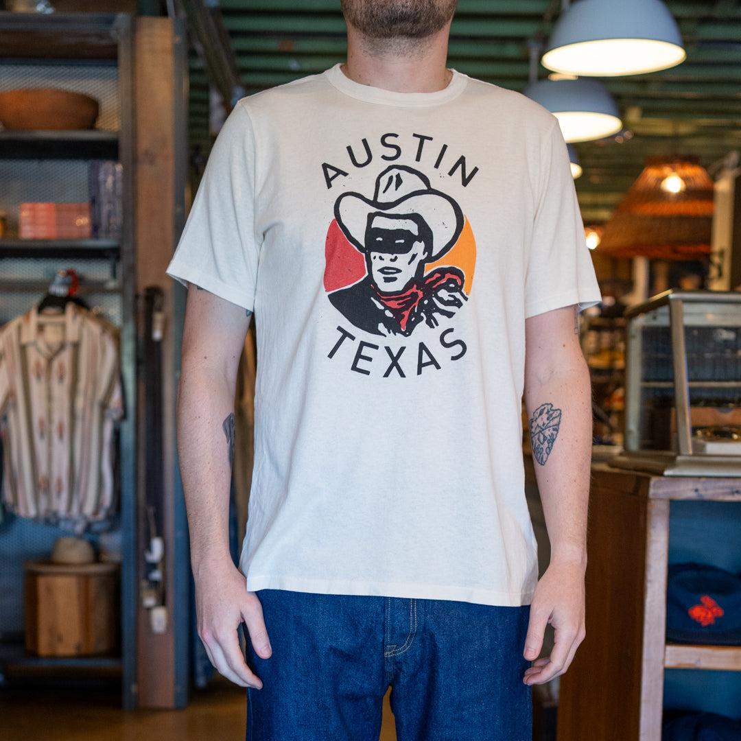 Made exclusively for STAG, this tee from Imogene + Willie is patterned, cut, sewn, and screen printed right here in the USA on soft, American-grown midweight cotton. Garment-washed and preshrunk to feel like your favorite vintage tee, they run a little on the smaller side, so we recommend taking one size up from your normal size. 7oz midweight cotton STAG Exclusive Hand-drawn Lone Ranger graphic Patterned, cut and sewn in the USA Super soft, vintage feel Runs small, we recommend taking one size up Made in USA Materials: 100% cotton The following measurements are for size Medium: Chest: 40” | Shoulder: 16” | Sleeve: 17” | Length: 24 ½”