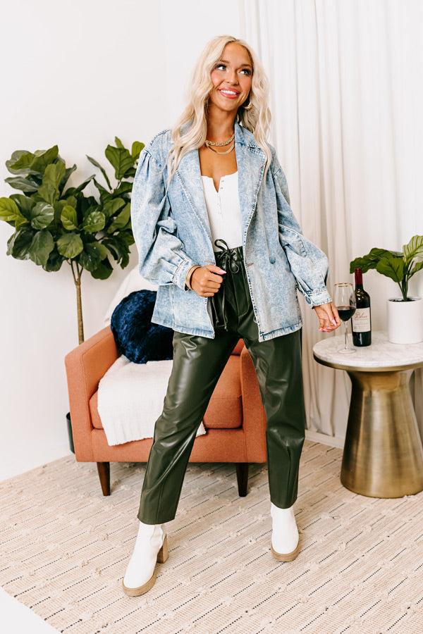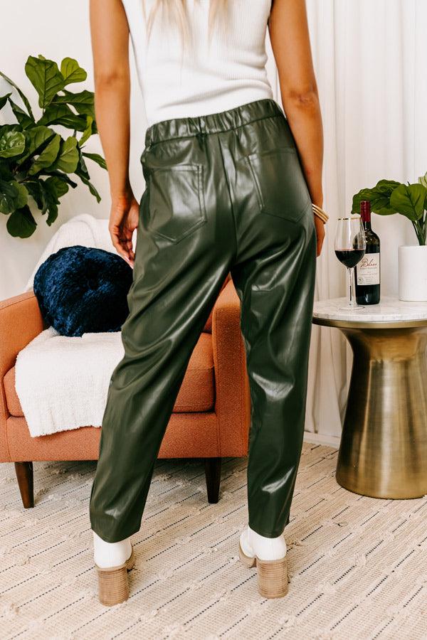 Take your night out looks to the next level with our fun army green 'Austin Nights' pants featuring lightweight faux leather material, a zip closure waistline with a tie closure, two side pockets and two back pockets, and a relaxed silhouette that ends in a straight ankle-length hemline! Measurements S : Front Rise 12", Hip 34", Inseam 25", Length 37", Waist 28-30". M : Front Rise 12.5", Hip 36", Inseam 25", Length 37.5", Waist 30-32". L : Front Rise 13", Hip 38", Inseam 25", Length 37.5", Waist 32-34".