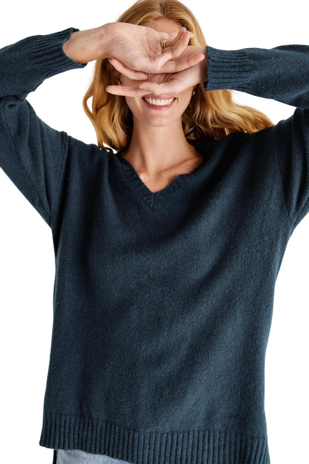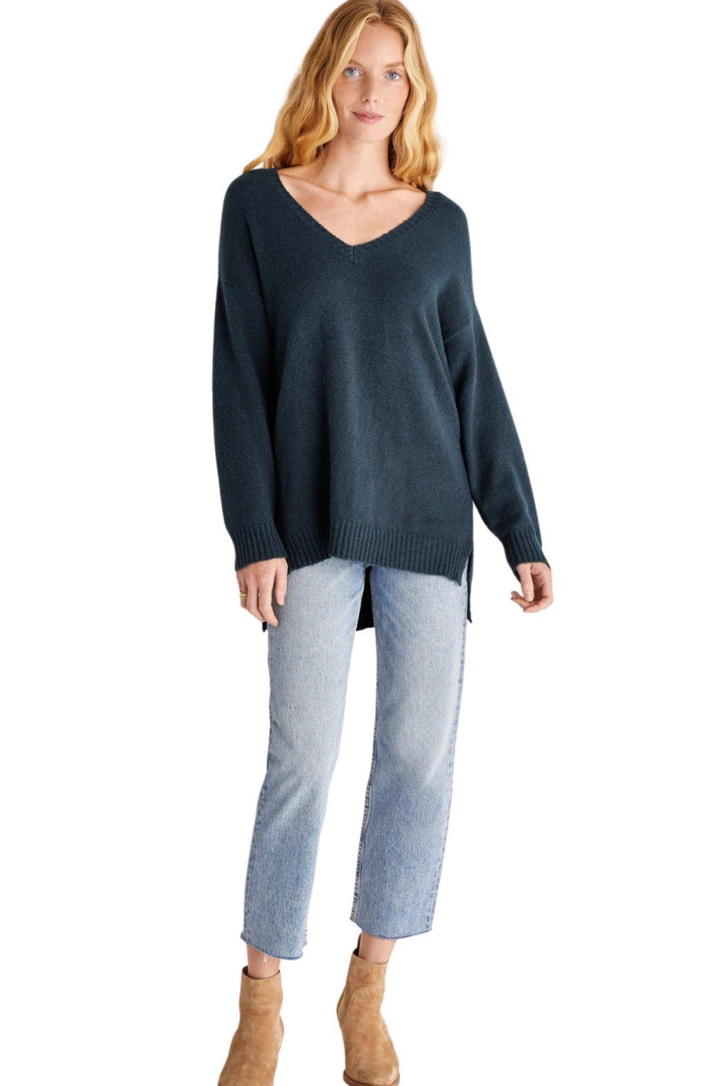 We've reached the point of the year when all we want to do first thing in the morning is throw on our coziest sweater and plan the rest of our outfit around it. Worry no more! Z Supply got us a comfy, stylish and cute sweater. It features relaxed fit and deep V-neck with ribbed texture. Such an adorable look for everyday casual wear. Features: - Deep V-neckline - Relaxed and oversized fit - Side slit detail - Ribbed knit accents at the neck, cuffs, and hem - Deep emerald color The silhouette of this sweater is long enough to wear over leather leggings or denim pants- add your fave wedge booties and you're good to go! Model is wearing a size Small