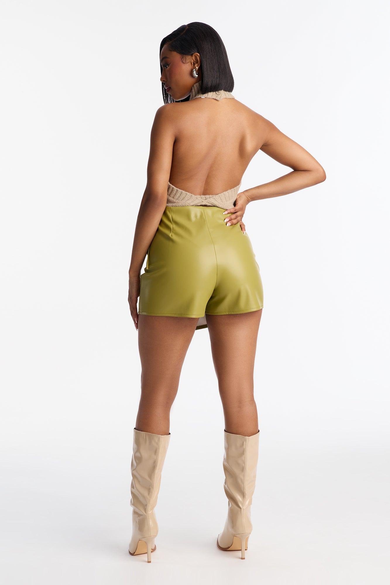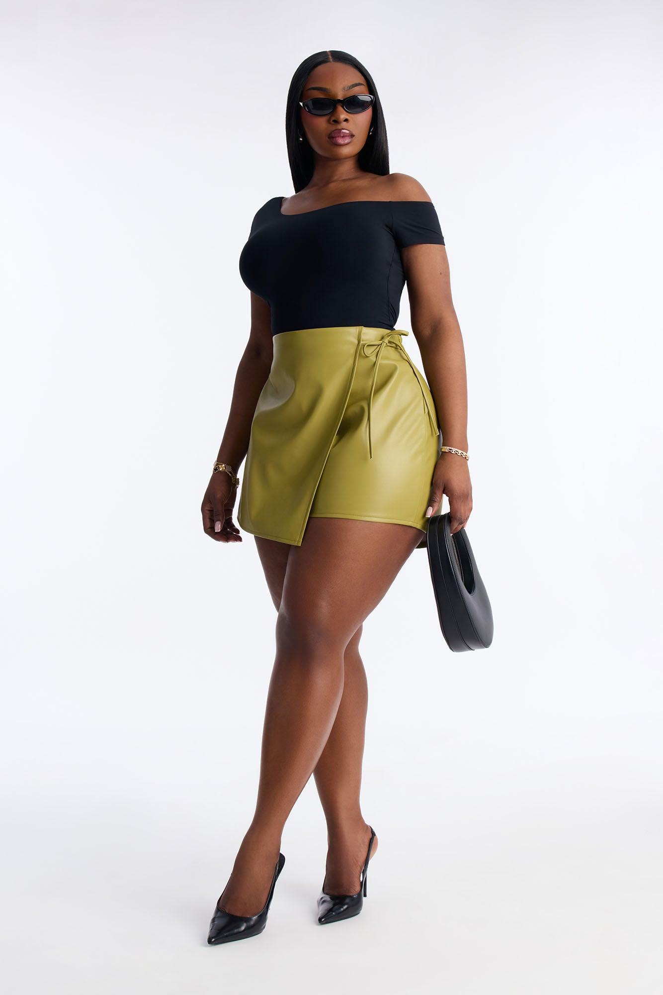 Autumn Vibes Faux Leather Wrap Skort - Olive Female