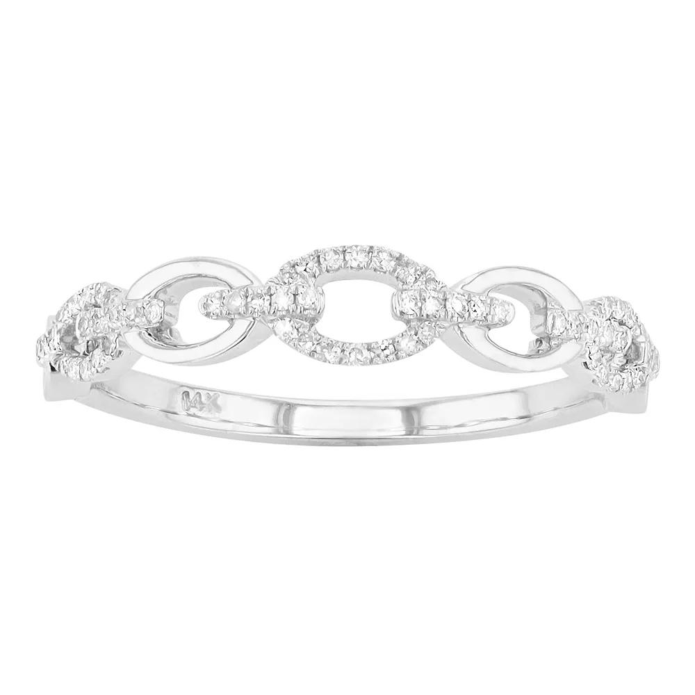 This stunning promise ring is the perfect way to pledge your commitment to her. This stunning promise ring is the perfect way to pledge your commitment to her.Click on this JEWELRY & WATCHES GUIDE to learn about fit, styles, materials and more! Metal: 14k white gold Packaging: boxed Plating: rhodium Width: 0.17 in. Finish: polishedDIAMOND DETAILS Total weight: 1/10 ct. Shape: round brilliant Setting: pave Color grade: H-I Clarity grade: SI-SI2 Diamond weights are approximate. Diamond Total Weights may vary between .01 and .13 ct. Some diamonds consist of fewer than 17 facets. Gemstones may have been treated to enhance their appearance. Special care may be required. Please visit our Gemstone Treatment & Special Care Guide for more information. Please note, due to the high value of this item, a signature may be required upon delivery. Size: 7. Gender: female. Age Group: adult.
