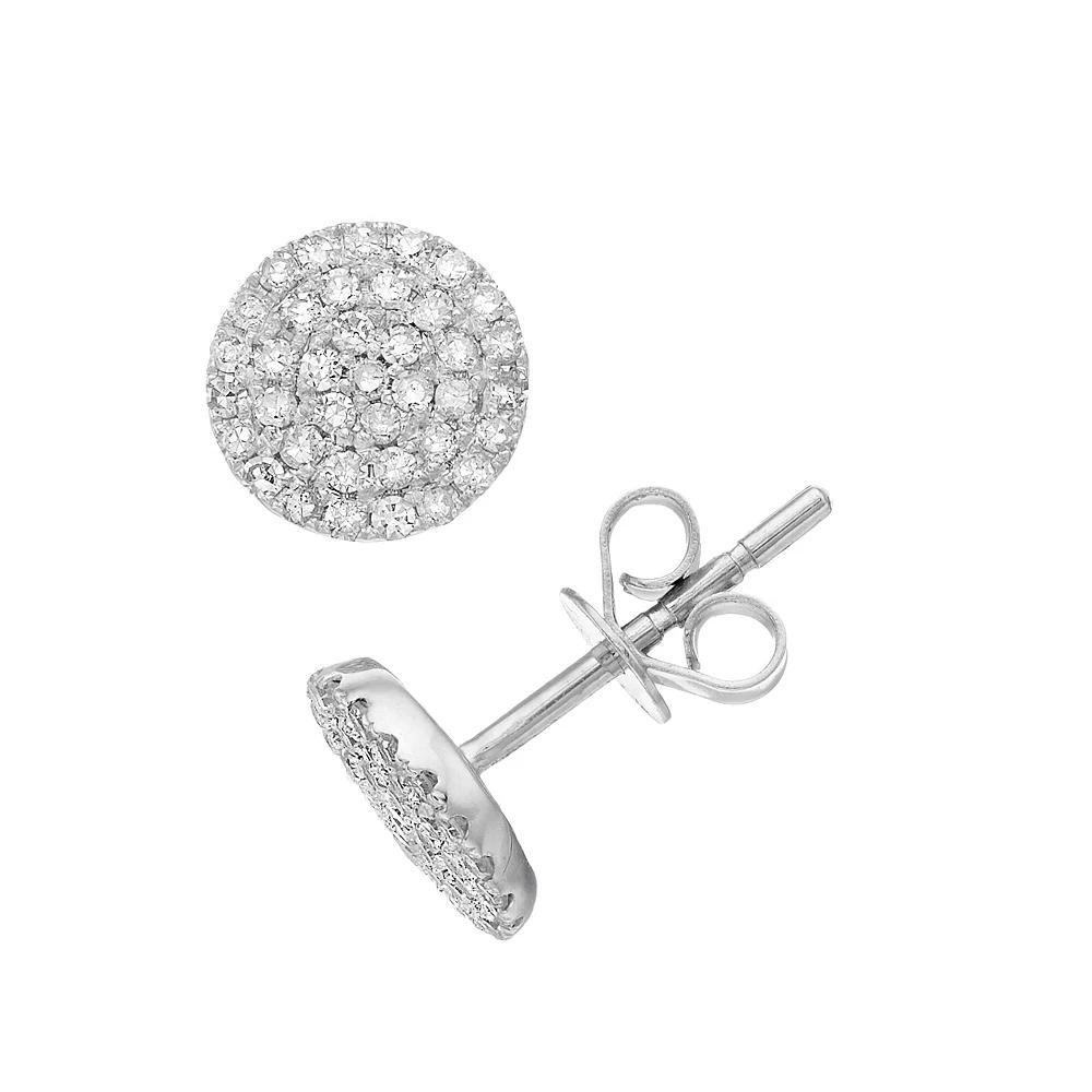 Add a touch of elegance to your jewelry collection with these Ava Blue diamond button earrings. Add a touch of elegance to your jewelry collection with these Ava Blue diamond button earrings. Nickel free Metal: 14k white gold Backings: post Packaging: boxed Plating: rhodium Finish: polished Earring diameter: 0.30 in.DIAMOND DETAILS Total weight: 1/4 ct. Clarity grade: SI-SI2 Shape: round brilliant Setting: pave Color grade: H-I Diamond weights are approximate. Diamond Total Weights may vary between .01 and .13 ct. Some diamonds consist of fewer than 17 facets. Gemstones may have been treated to enhance their appearance. Special care may be required. Please visit our Gemstone Treatment & Special Care Guide for more information. Please note, due to the high value of this item, a signature may be required upon delivery. Size: One Size. Gender: female. Age Group: adult.