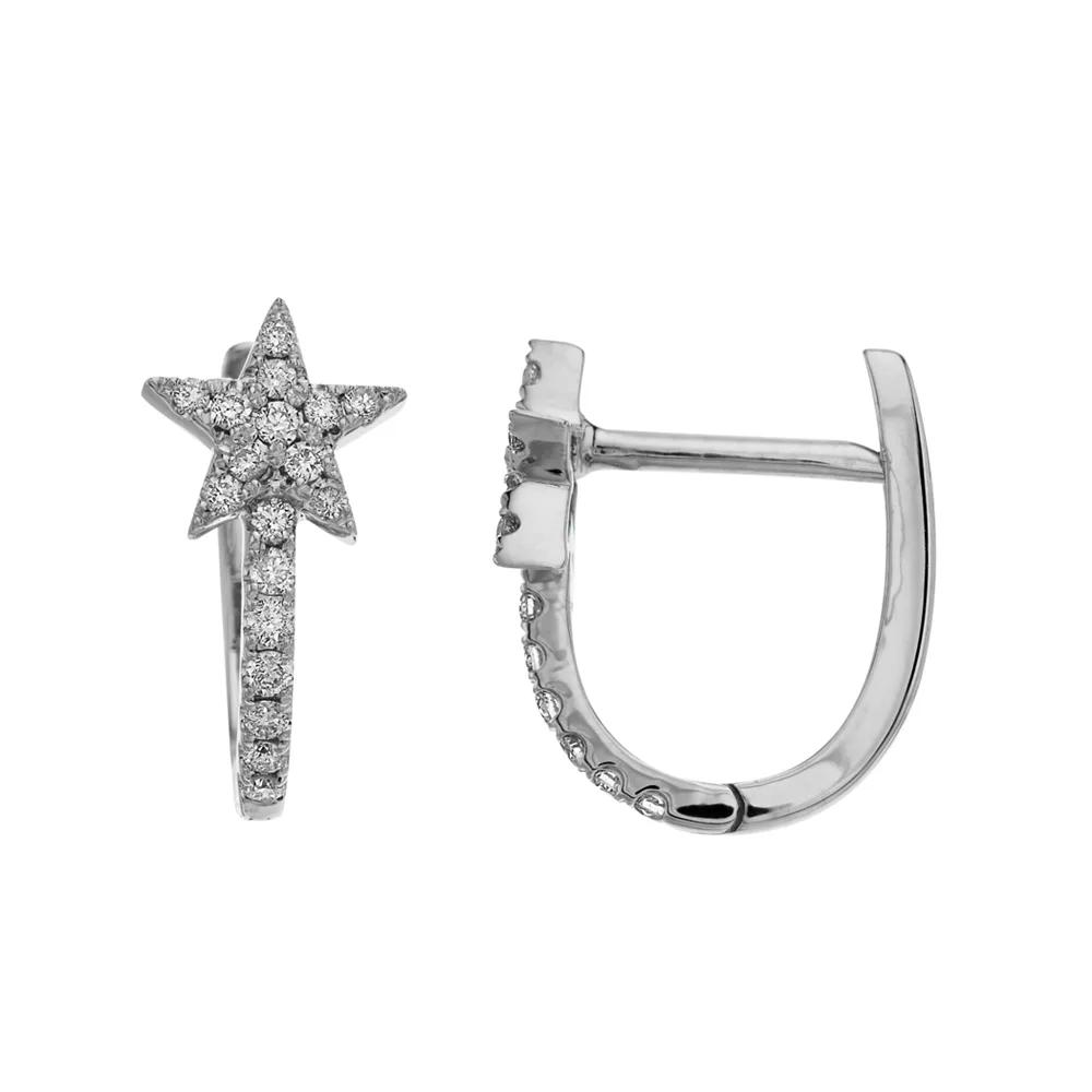 These Ava Blue 14K White Gold 1/5 Carat Diamond Star Hoop Earrings are stylish, elegant, and beautifully designed. These Ava Blue 14K White Gold 1/5 Carat Diamond Star Hoop Earrings are stylish, elegant, and beautifully designed. Metal: 14k white gold Backings: clip-on Packaging: boxed Plating: rhodium Finish: polished Earring length: .53 in.DIAMOND DETAILS Total weight: 1/5 ct. Shape: round Setting: pave Diamond weights are approximate. Diamond Total Weights may vary between .01 and .13 ct. Some diamonds consist of fewer than 17 facets. Image(s) may be enlarged to show detail. Please note, due to the high value of this item, a signature may be required upon delivery. Size: One Size. Gender: female. Age Group: adult.