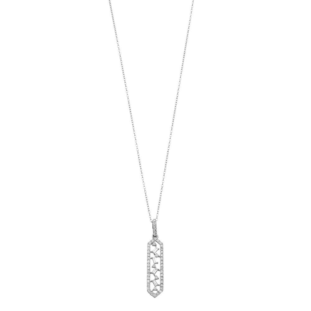 Be bold with this Ava Blue 14k White Gold 3/8 Carat T.W. Diamond Art Deco Pendant Necklace Be bold with this Ava Blue 14k White Gold 3/8 Carat T.W. Diamond Art Deco Pendant Necklace Metal: 14k white gold Necklace length: 18 in. Packaging: boxed Plating: rhodium Finish: polished Pendant size: 1.21 x 0.26 in. Chain type: cableDIAMOND DETAILS Total weight: 3/8 ct. Shape: round Setting: pave Diamond weights are approximate. Diamond Total Weights may vary between .01 and .13 ct. Some diamonds consist of fewer than 17 facets. Image(s) may be enlarged to show detail. Please note, due to the high value of this item, a signature may be required upon delivery. Size: 18. Gender: female. Age Group: adult.
