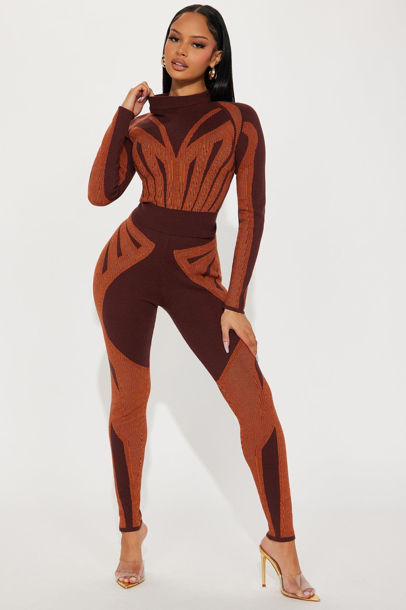 Available In Black/combo And Cognac. Sweater Legging Set Long Sleeve Top High Neck Leggings Elastic Waistband Stretch Disclaimer: Pattern Placement May Vary. 50% Rayon 30% Polyester 20% Nylon Imported