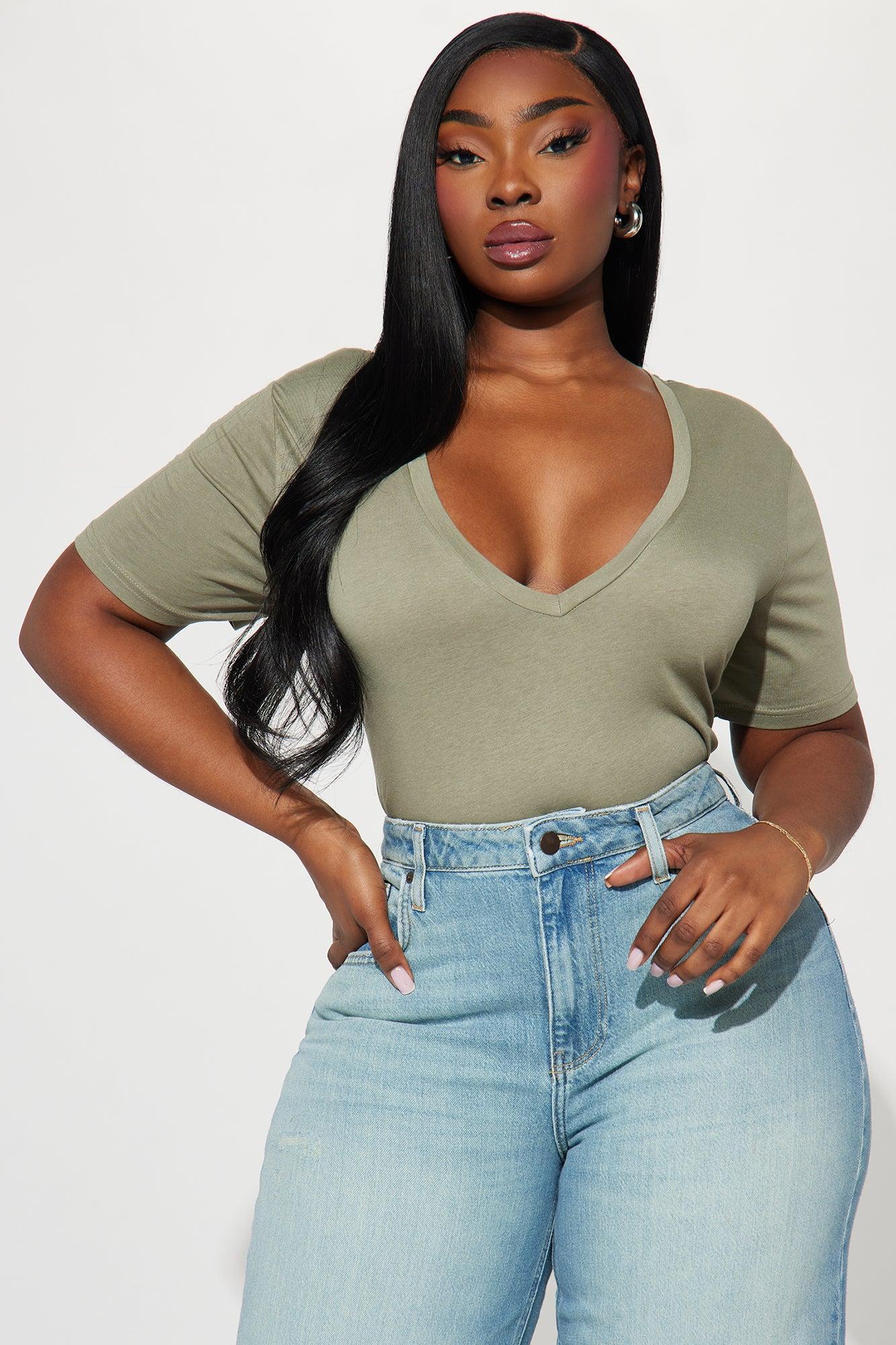 Ava V-Neck Tee - Olive