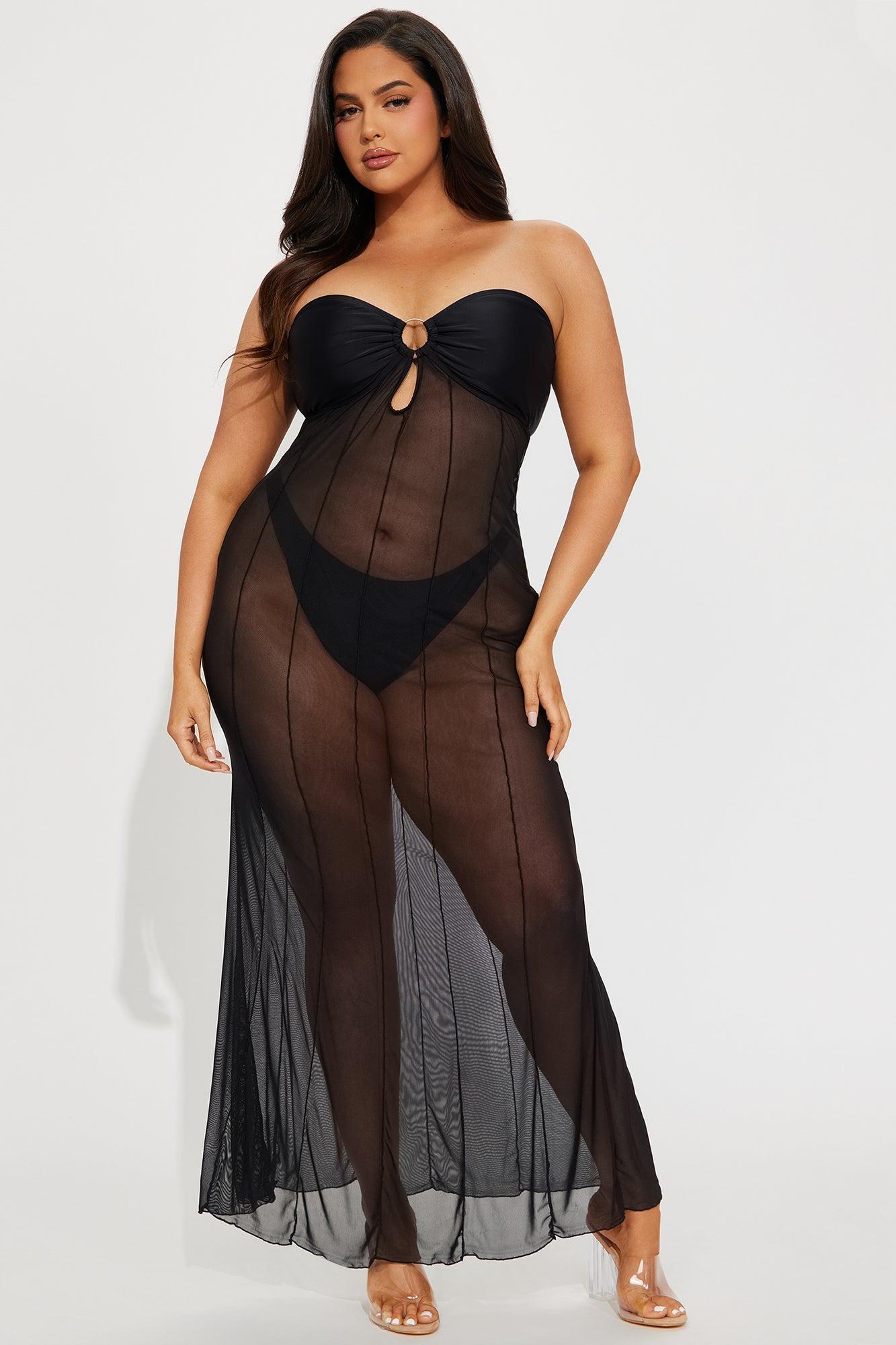 Available In Black. 2 Piece Maxi Dress Bandeau Strapless Mesh O-Ring Cheeky Bikini Bottom Full Stretch Final Sale Disclaimer: Recommended For Poolside Use - Not Water Resistant Shell: 82% Polyamide 18% Spandex Shell: 95% Polyester 5% Spandex Lining: 95% Polyester 5% Spandex Imported