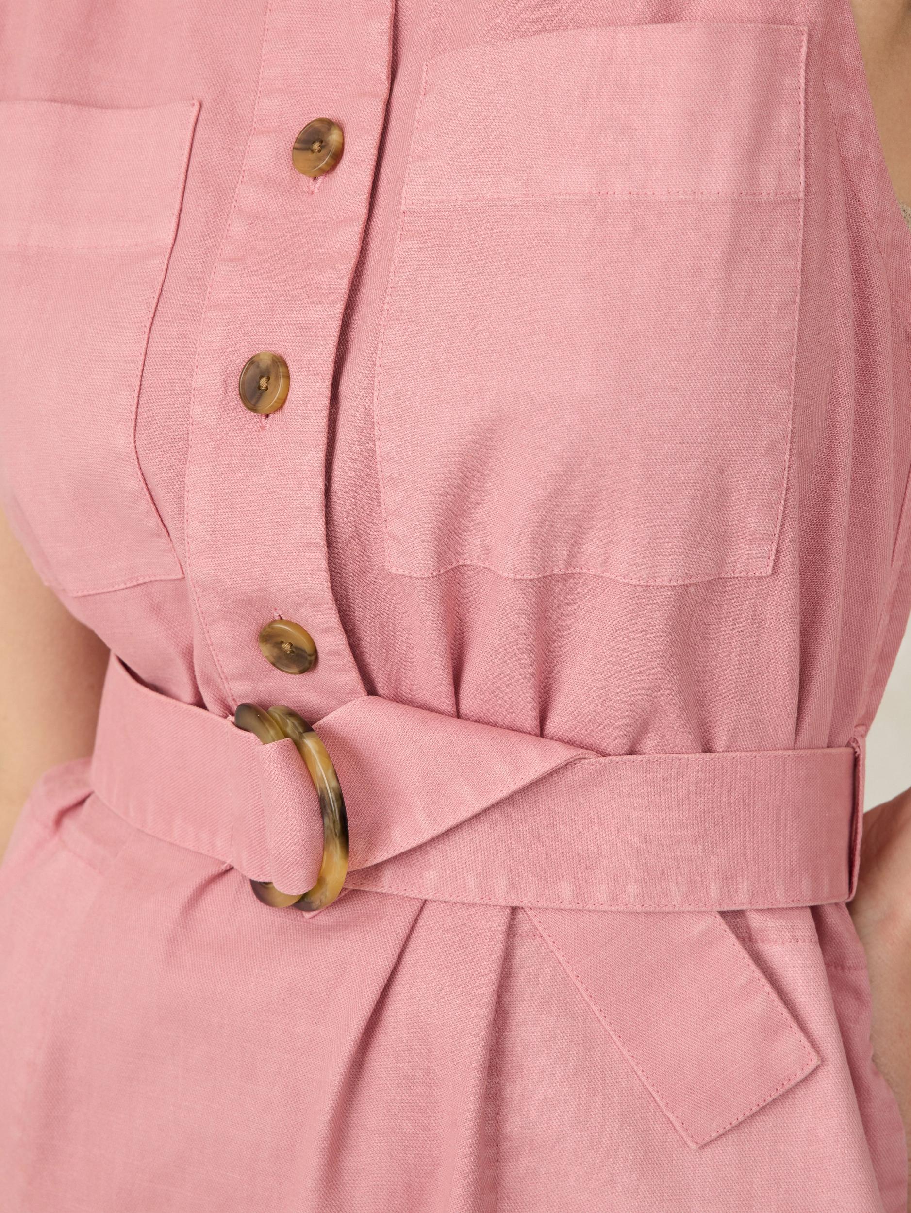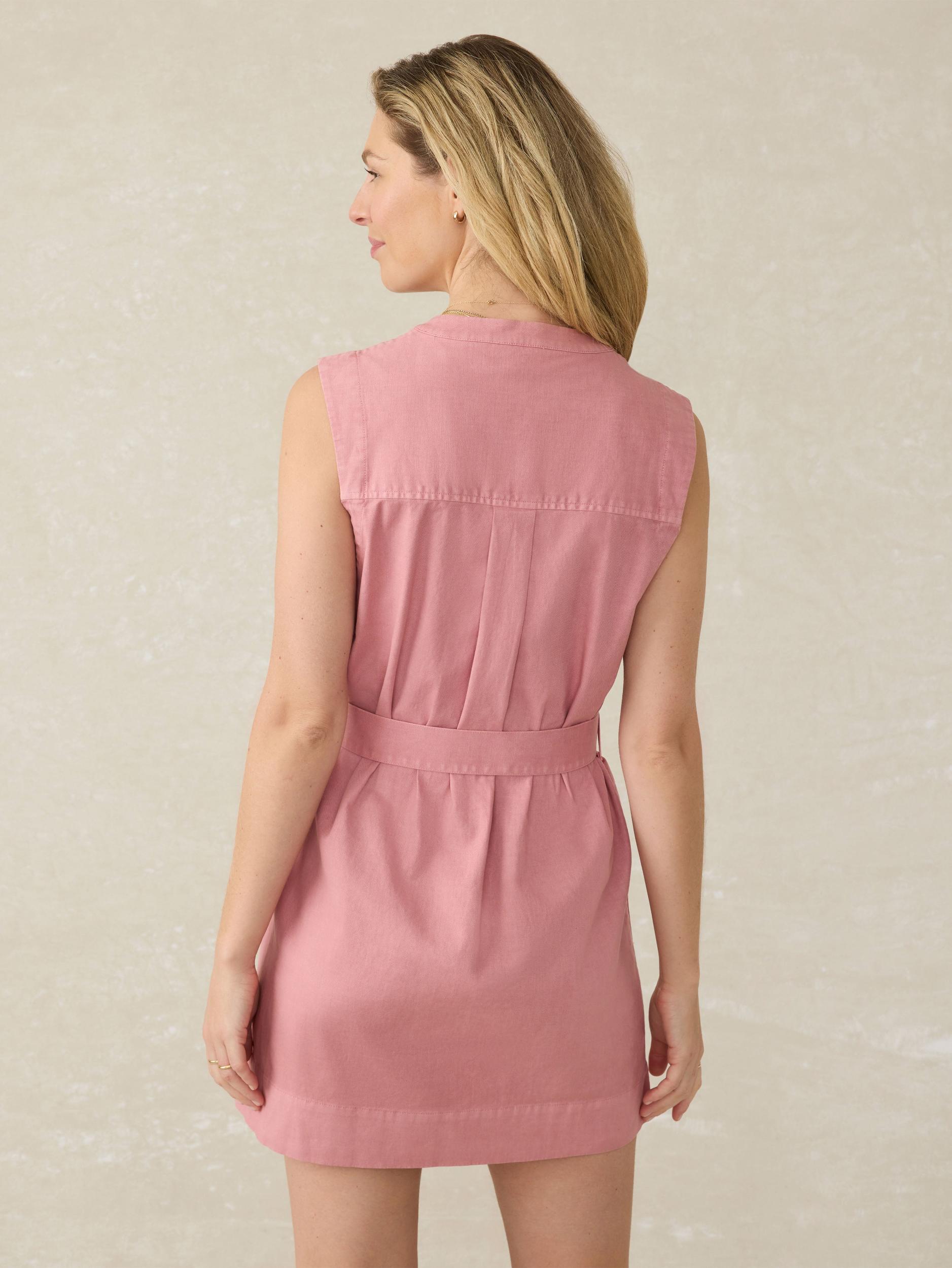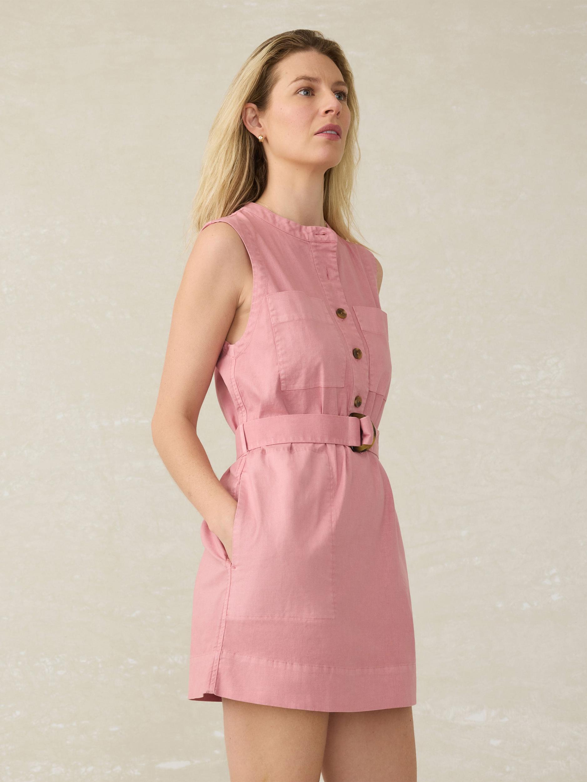 A versatile take on the classic utility dress, this tank silhouette blends laid-back ease with thoughtful details. Designed with a mandarin collar, patch pockets, and a flattering shape, it’s crafted from soft organic cotton with a hint of stretch for all-day comfort and a perfect fit. The breathable fabric is sustainably sourced and garment-washed for a lived-in feel from day one. Whether paired with sneakers for casual outings or sandals for summer nights, it’s a warm-weather staple that feels as good as it looks. Fit: Classic Fit, Length: 34½" Detail: Functional placket with horn buttons. Patch pockets at chest and pockets at side seams. Button loops at waist with self belt and horn D-ring closure. Material: 98% Organic Cotton, 2% Spandex Model: Chloe is 5'10 wearing size Medium Care: Close all fastening before wash. Turn inside out. Machine wash cold with like colors. Delicate cycle. Do not bleach. Tumble dry low. Remove promptly. Cool iron when needed. WDS2586-BAO